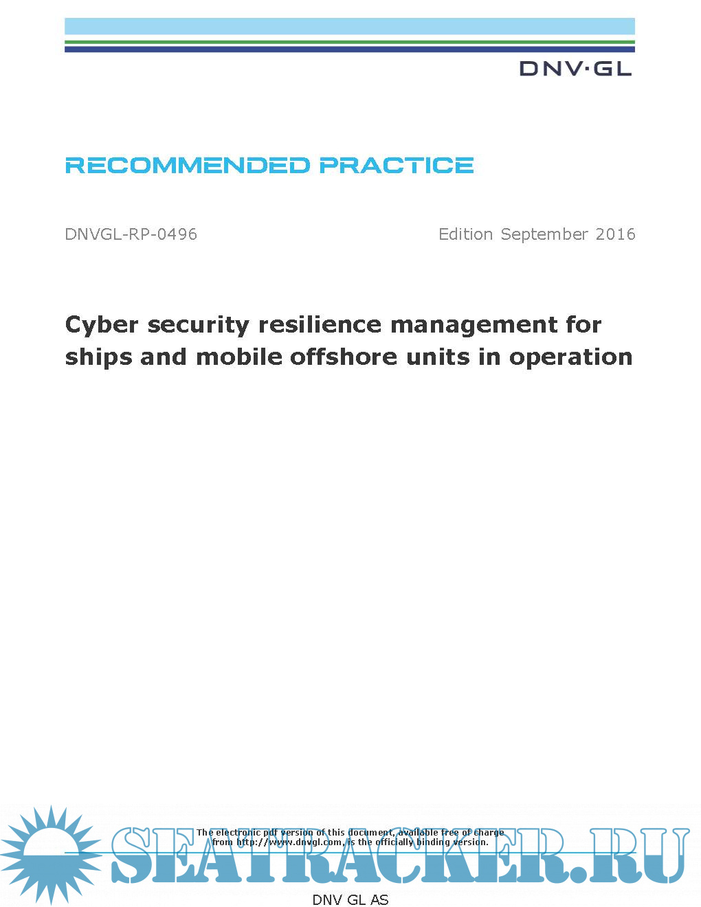 6. DNVGL-RP-0496, 2016 Cyber security resilience management for ships and mobile offshore units in operation, Recommended Practice -