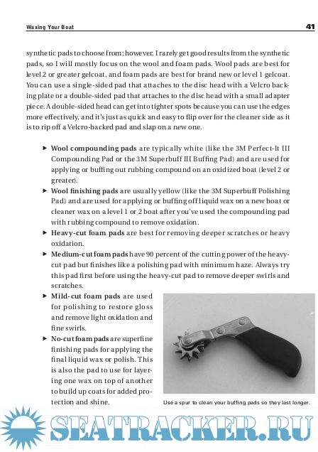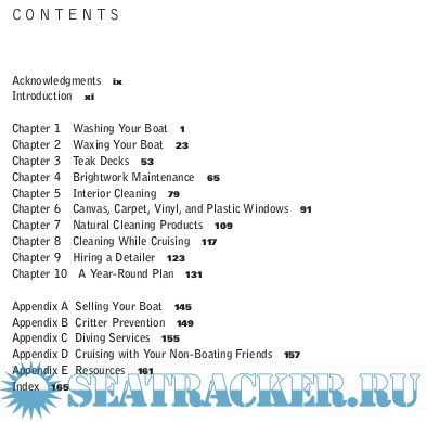 Year: 2009 Language: english Author: Natalie Sears Genre: Manual Format: PDF Quality: Scanned pages + text layer Number of pages: 193 Description: Restore that ; showboat ; look to tiredgelcoat, canvas, brightwork, upholstery,metalwork, and more Boat cleaning isn't as simple as taking a can of kitchencleanser and scrubbing away, and improper procedurescan cause damage to the boat or the environment. Thisis the only stem-to-stern guide to all aspects of boatcleaning and detailing. The book recommends bothgeneric and brand-name cleaning and maintenancematerials to help you make the right selections. Lots of before-and-after photos show you how to: Keep your boat looking great and protect marketvalue Achieve maximum results with minimum work andenvironmentally safe methods. Use tables and checklists to keep work organized andefficient.