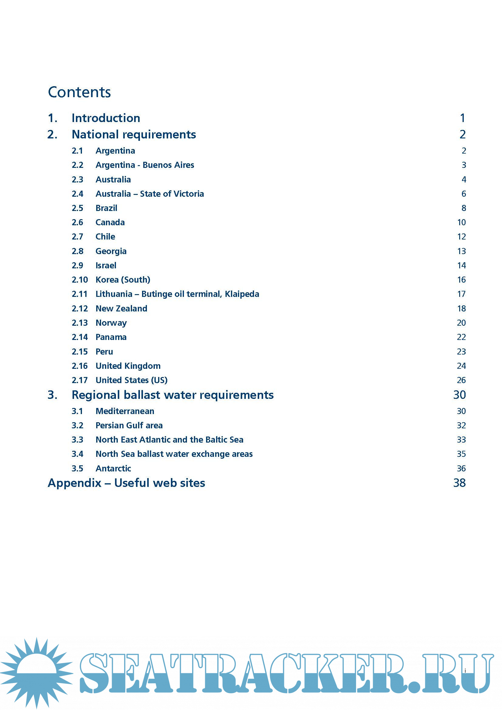 Year: 2016 Language: english Author: LRS Genre: Reference book Format: PDF Quality: eBook Pages count: 44 Description: This document contains a synopsis of a number of known national, regional and local ballast water management regulations and known bio-fouling management regulations and requirements. The information here is an overview of the regulations and requirements to the best of our knowledge at the time of writing, but may not be an exhaustive list. Individual country authorities should be consulted before entering their jurisdiction, to ensure compliance with any relevant ballast water management regulations. In addition, the complete text of each regulation referenced in this document should be consulted for full details.