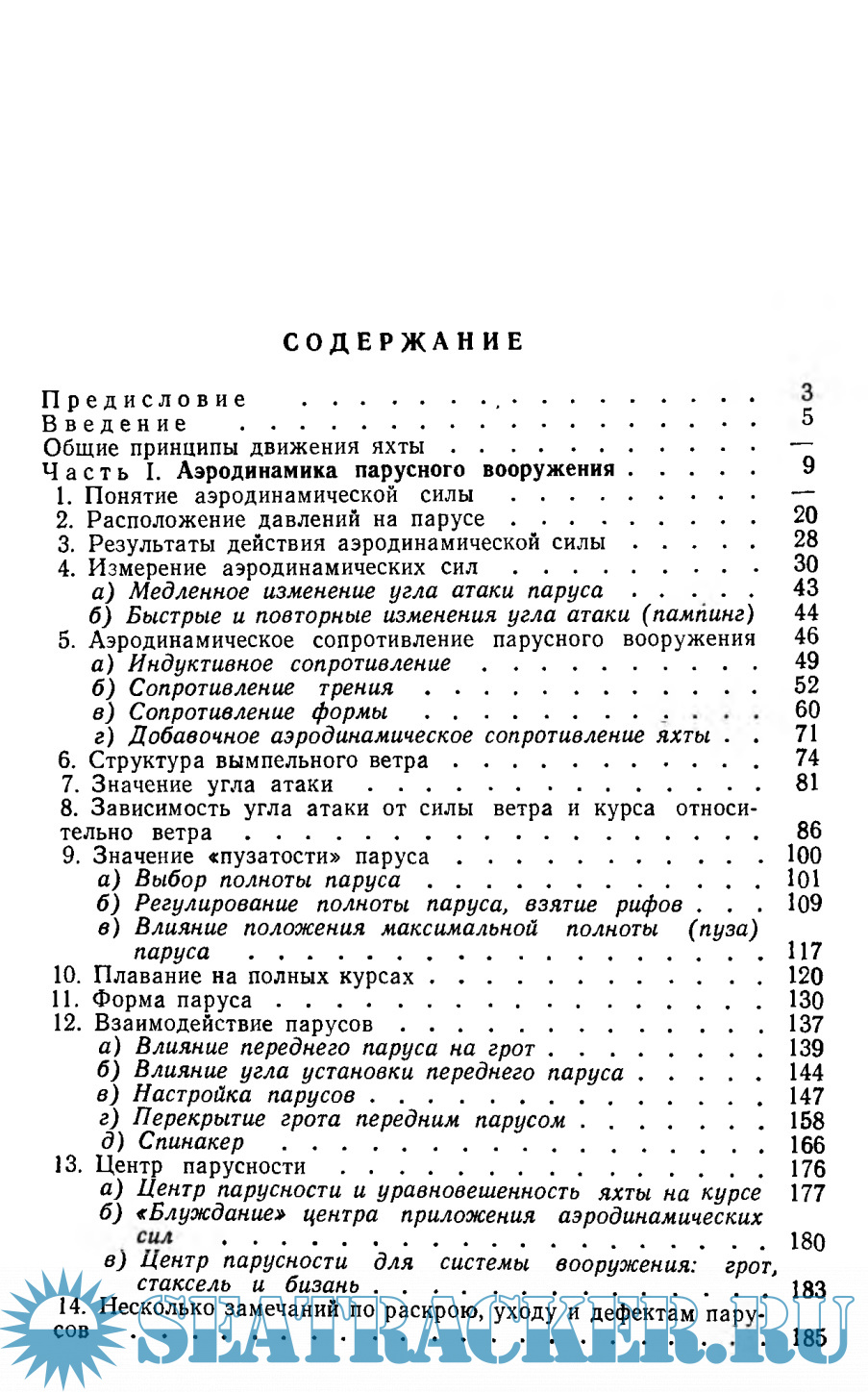 Год выпуска: 1970 Язык: русский Автор: Чеслав Мархай Жанр: Учебное пособие Издательство: Физкультура и спорт Издание: 2 Формат: PDF Качество: Отсканированные страницы + слой распознанного текста Количество страниц: 411 Описание: Труд польского яхтсмена Чеслава Мархая, впервые изданный в 1963 году. Книга была редкой 50 лет назад, и ее трудно найти в продаже сегодня. В ней собрана объемная теоретическая база по парусному спорту, обильно приправленная многочисленными практическими примерами и рисунками. Книга будет полезна любителям парусного спорта, которые стремятся расширить свои знания на пути к вершине мастерства. При подготовке второго издания книги автор использовал помимо своих работ результаты исследований профессоров X. М. Баркла, С. Е. Боудена и многих других крупнейших специалистов в области теории и практики парусного спорта, Книга подверглась полной переработке. Структура книги, расположение материала сохранены, как в первом издании, но в отличие от него во втором издании терминология и условные обозначения заменены принятыми в советской научно-технической и специальной литературе. Замена терминологии и условных обозначений, а также примечания выполнены при участии преподавателя кафедры судостроения Севастопольского приборостроительного института П. С. Якшарова, работавшего над рукописью в качестве спецредактора. Список условных обозначений приведен в приложении.