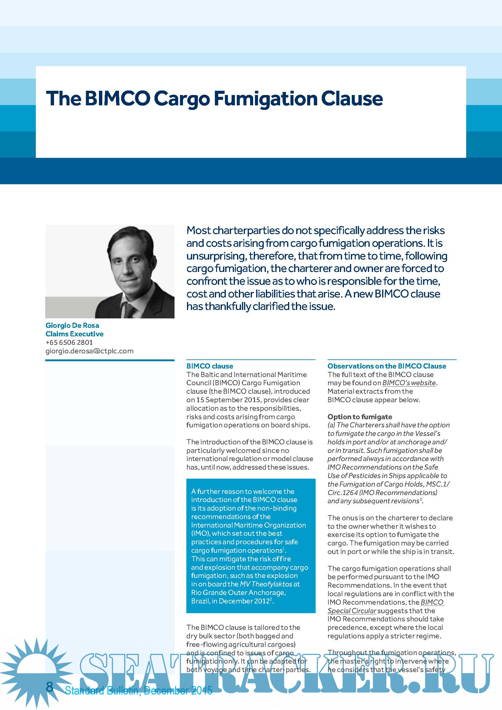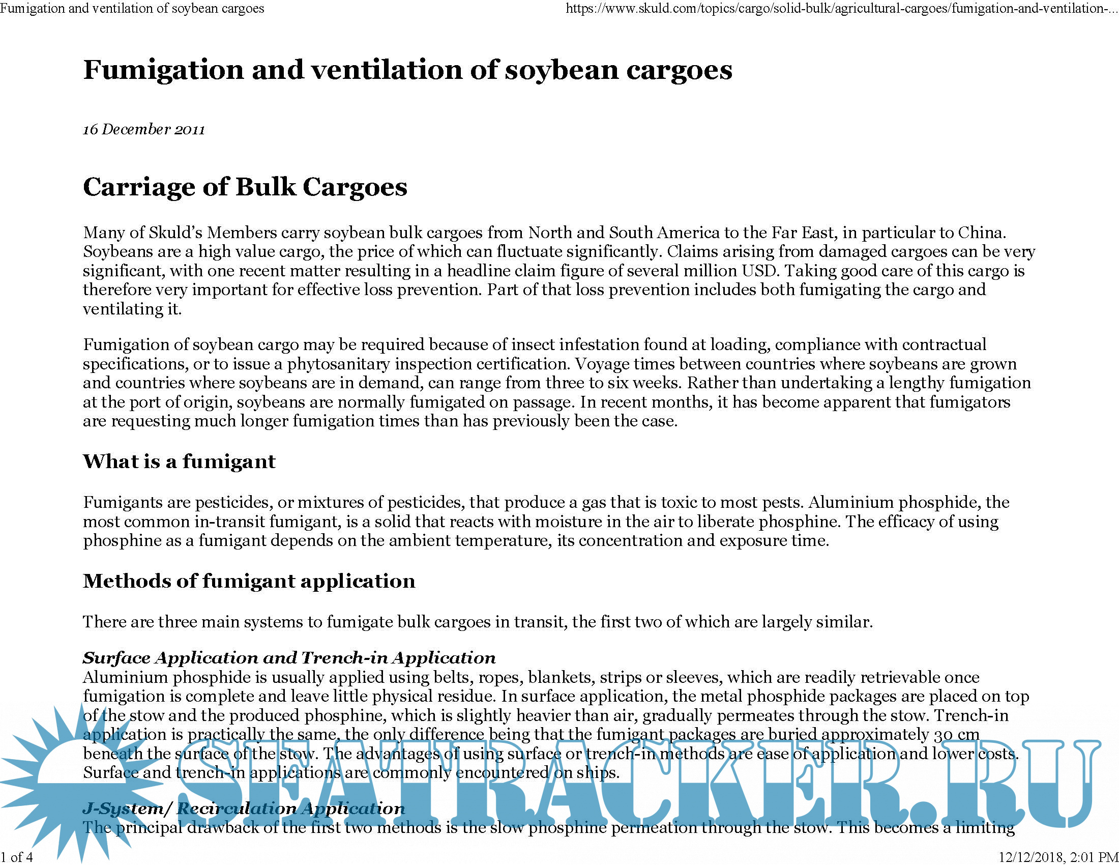 Description: This Download contains information relating to Fumigation of cargo on board ships. Refer to contents for complete list