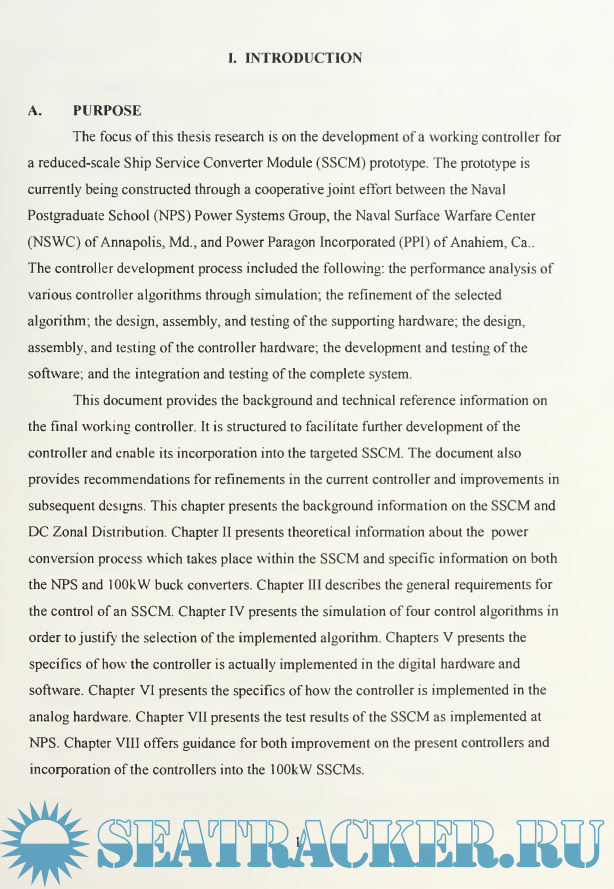 Year: 1996 Language: english Author: Benjamin D. Salerno Genre: Research papers Format: PDF Quality: eBook Pages count: 142 Description: The Navy has invested in an effort to update the ship electrical distribution system for new vessels. The new architecture divides the ship into specific zones containing common energy conversion devices. Rather than the traditional AC distribution, DC will be produced at the source ( a multiphase alternator connected to a controlled rectifier). An integral part of the proposed DC distribution system is the Ship Service Converter Module (SSCM) which acts as a buffer between a main DC bus and a specific zone in the ship. Currently a research effort is underway to make available two Reduced Scale Advanced Development (RSAD) lOOkW SSCMs for testing at the Naval Surface Warfare Center, Annapolis. The Power Laboratory at the Naval Postgraduate School is responsible for delivering two identical prototype controllers based on digital signal processing for the RSAD SSCMs. The focus of this thesis is the design, construction and testing of the prototype controllers. This engineering effort includes the following: the analysis of the performance of various control algorithms through simulation; the refinement of the selected algorithm; the design, assembly, and testing of the controller and its supporting hardware; the development and testing of the software; and the integration and testing of the complete system.
