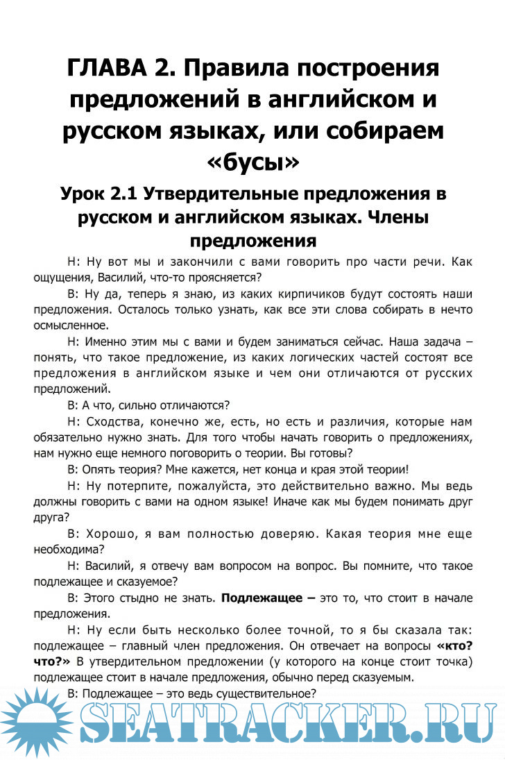 Описание: Эта книга для тех, кто не любит читать скучные научные книги. Здесь вы найдете уникальный подход к грамматике английского языка, изложенной в форме диалога между преподавателем и учеником. Автор убежден, что английская грамматика очень проста, нужно только правильно донести ее до ученика. Книга состоит из теоретической и практической части. Сначала вы узнаете, как строятся разговорные предложения в английском языке, а после будете строить их самостоятельно.