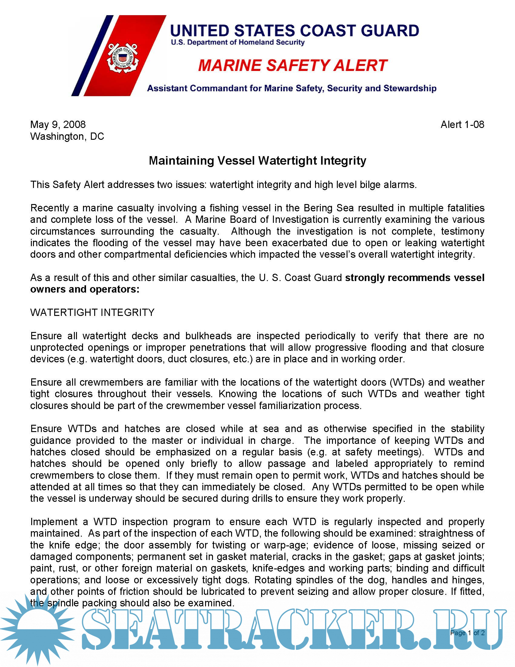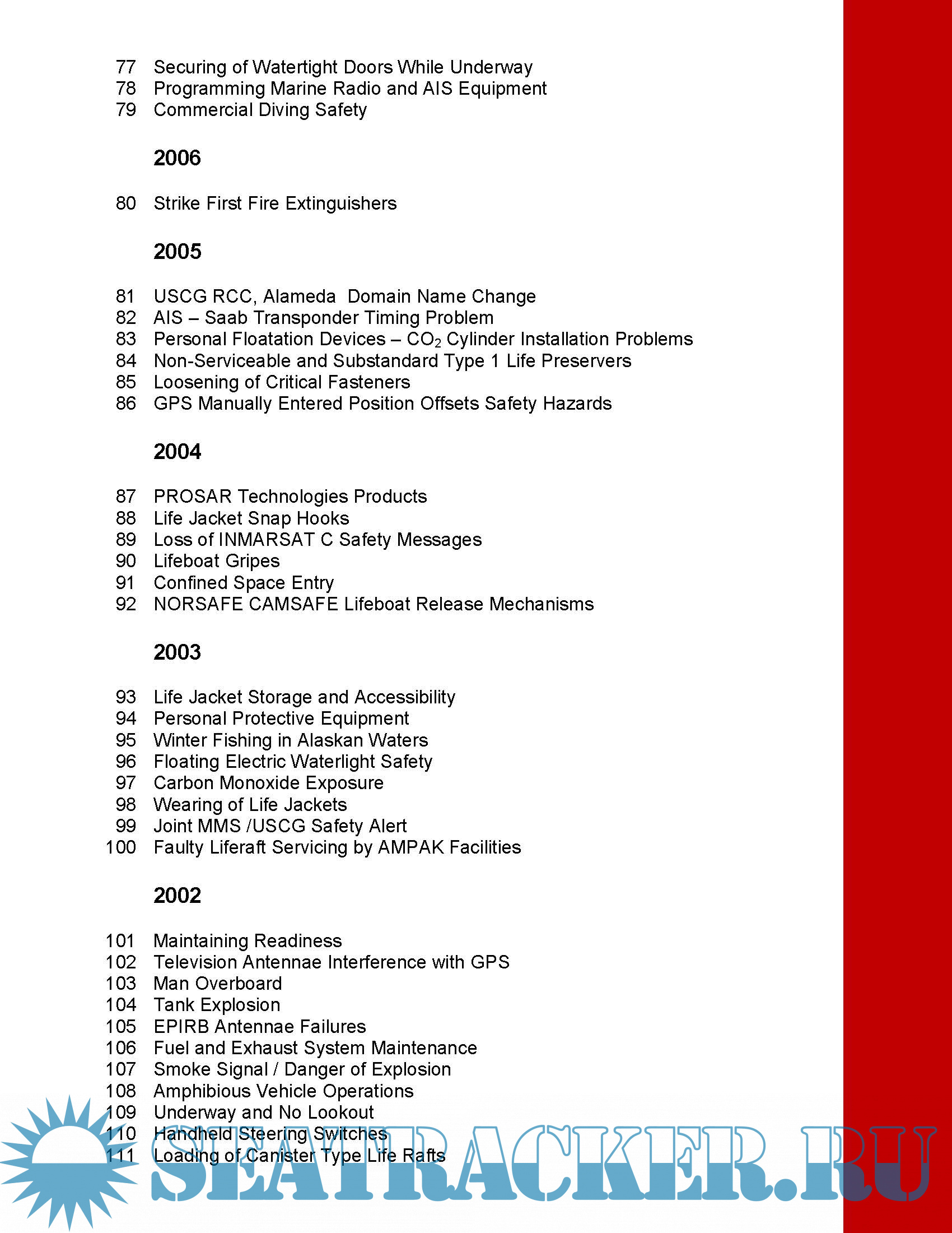 U.S. Coast Guard Prevention - Safety Alerts 1996 -2014