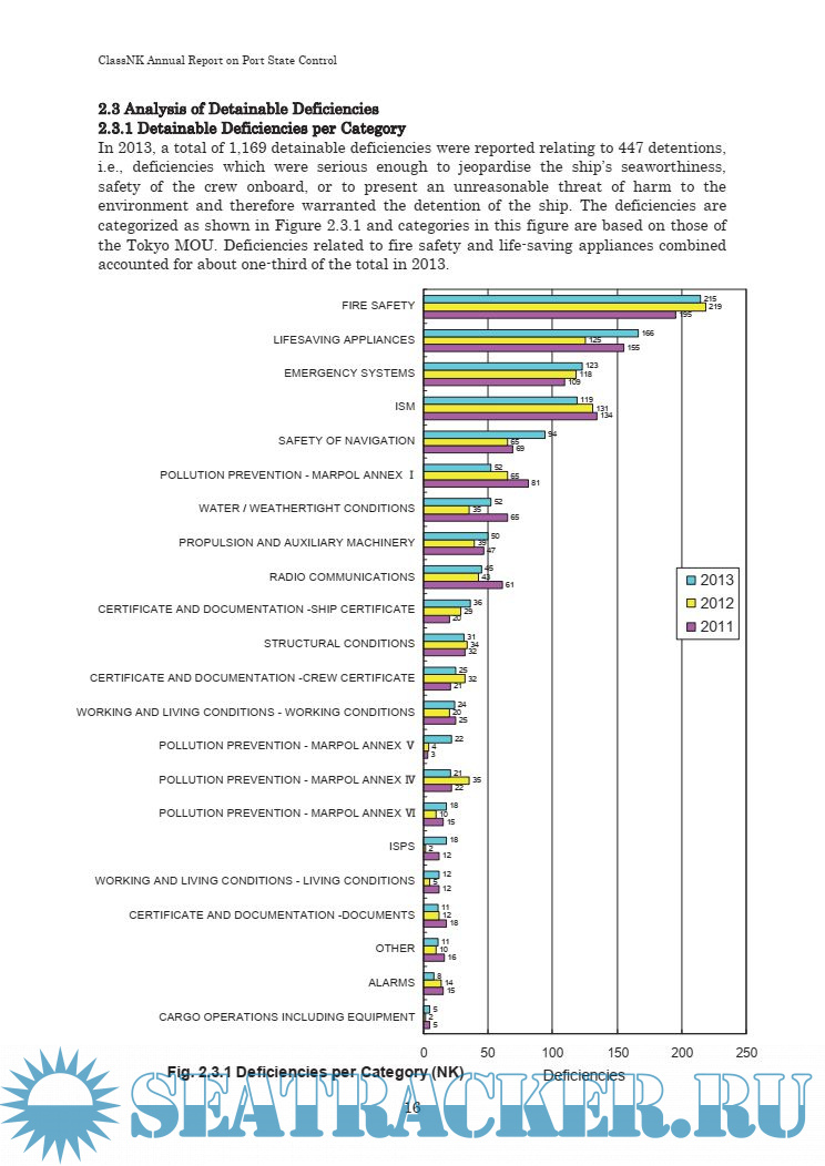 Description: This annual Port State Control (PSC) report summarizes deficiencies identified by PSC inspections carried out in various countries around the world. This report is prepared withthe objective of building awareness of the present state of PSC as well as to improve future maintenance and inspections, and also Safety Management System is compiled into the regulations.