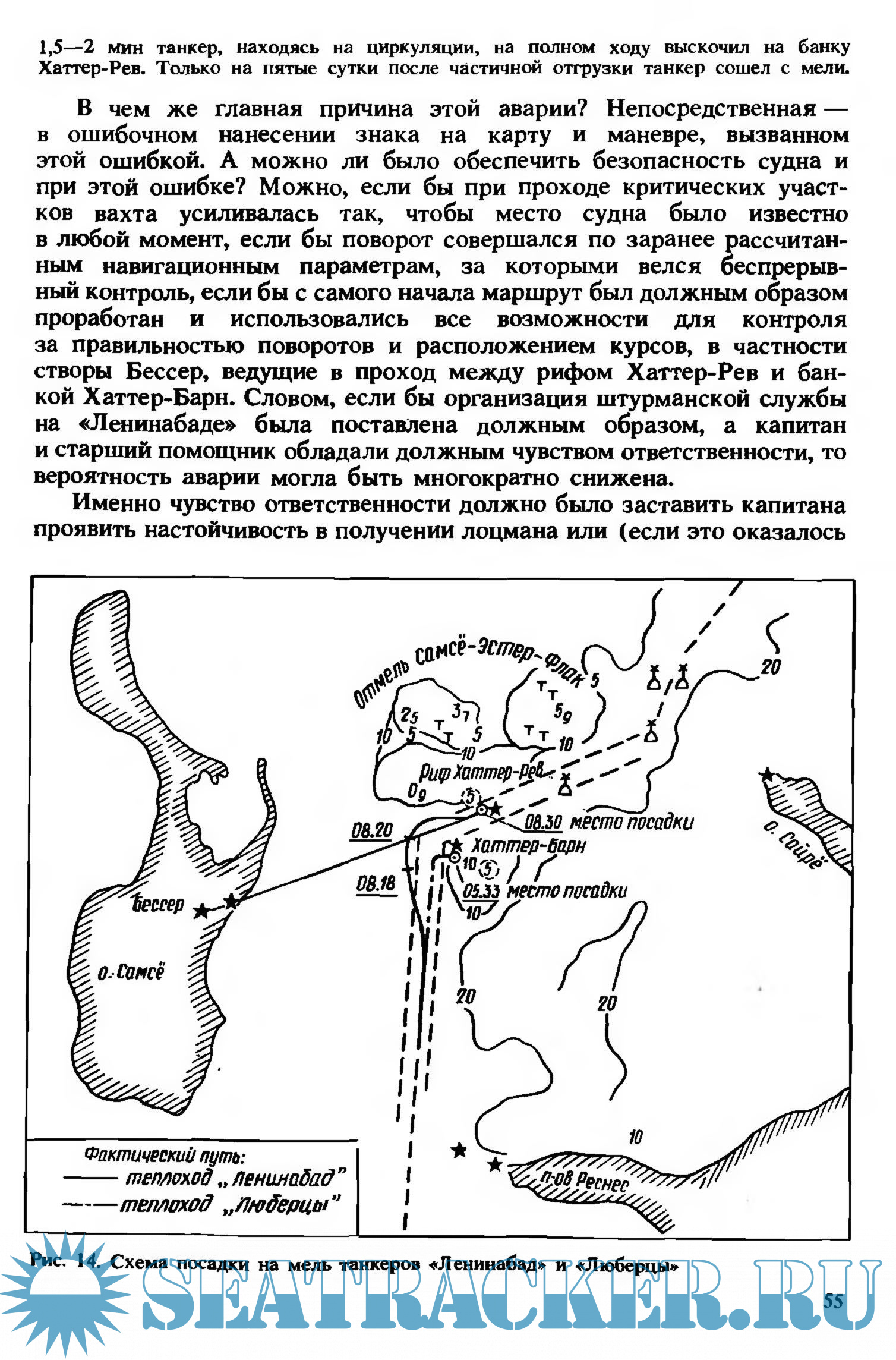 Показана зависимость степени тяжести аварийных случаев от внешних условий, района плавания и других факторов. Каждая из характерных причин проиллюстрирована конкретными примерами. Даны рекомендации по предотвращению навигационных аварий.