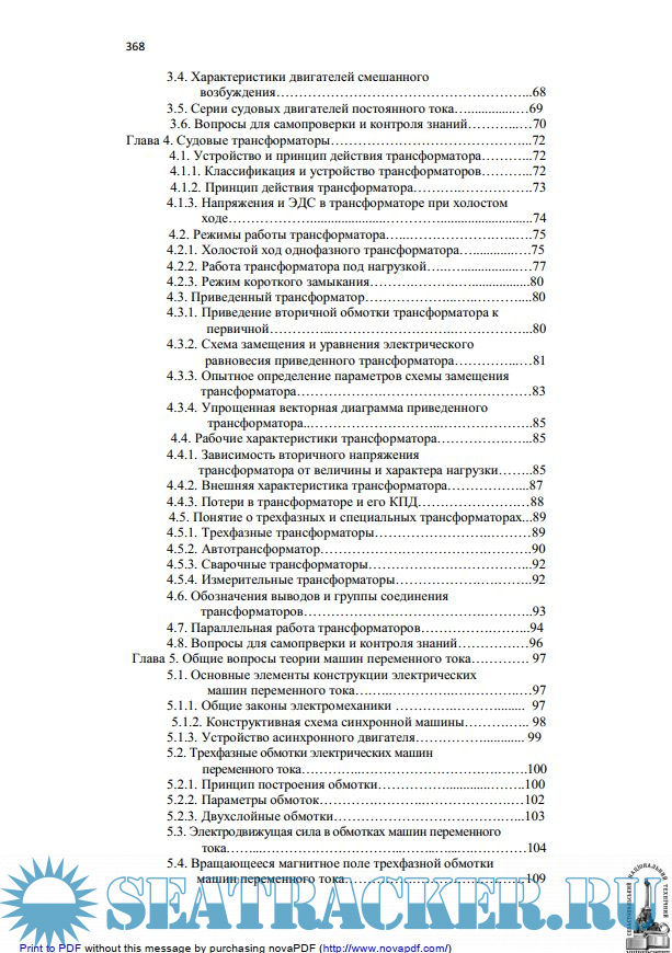 Описание: Рассмотрены принципы действия, конструктивные особенности, основы теории, характеристики, режимы работы судовых электрических машин и трансформаторов. Студентам, обучающимся в высших учебных заведениях по специальности «Эксплуатация судового электрооборудования и средств автоматики». Может быть также использовано в системе повышения квалификации и переподготовки судовых электромехаников.