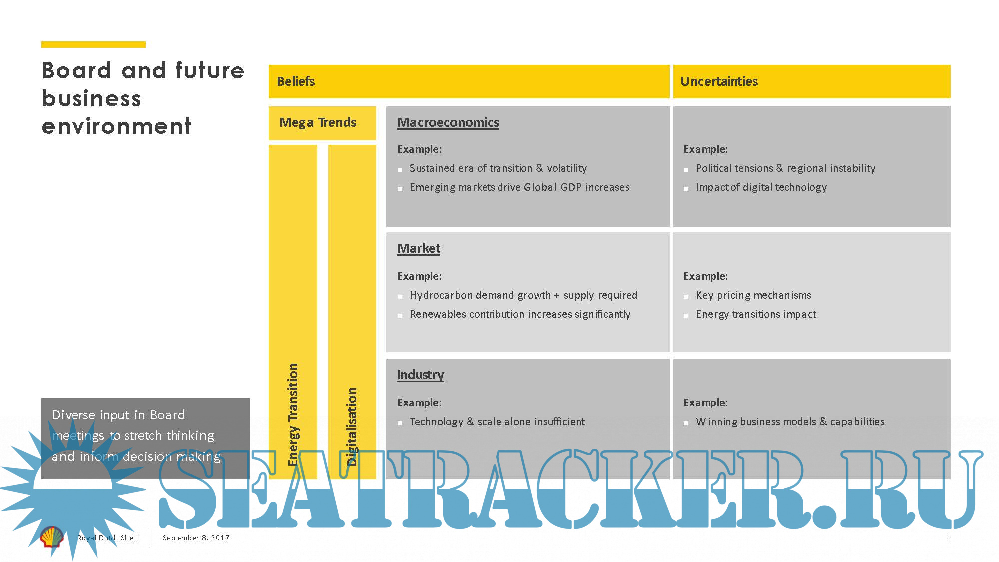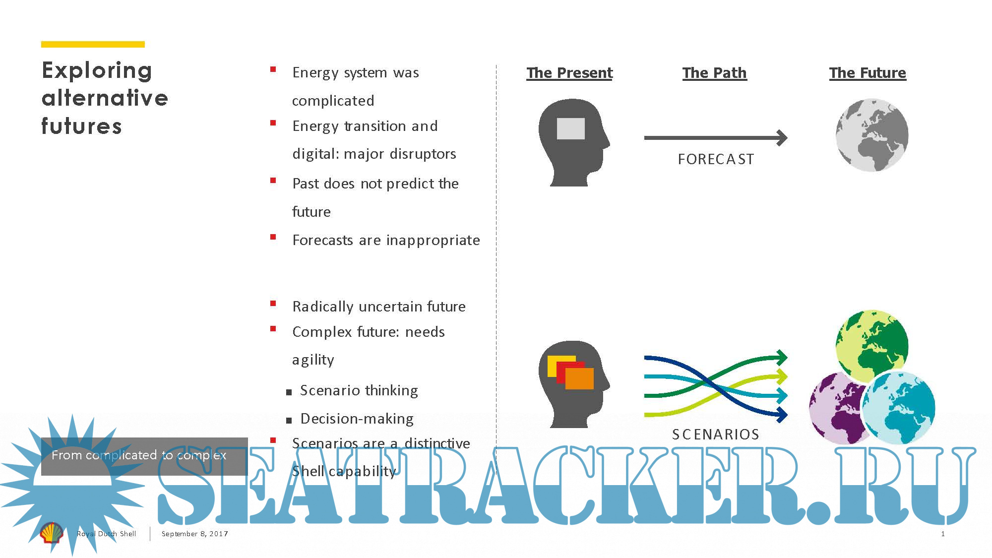 Description: This presentation contains data from Shell’s New Lens Scenarios. The New Lens Scenarios are a part of an ongoing process used in Shell for 40 years to challenge executives’ perspectives on the future business environment. We base them on plausible assumptions and quantifications, and they are designed to stretch management to consider even events that may only be remotely possible. Scenarios, therefore, are not intended to be predictions of likely future events or outcomes and investors should not rely on them when making an investment decision with regard to Royal Dutch Shell plc securities.