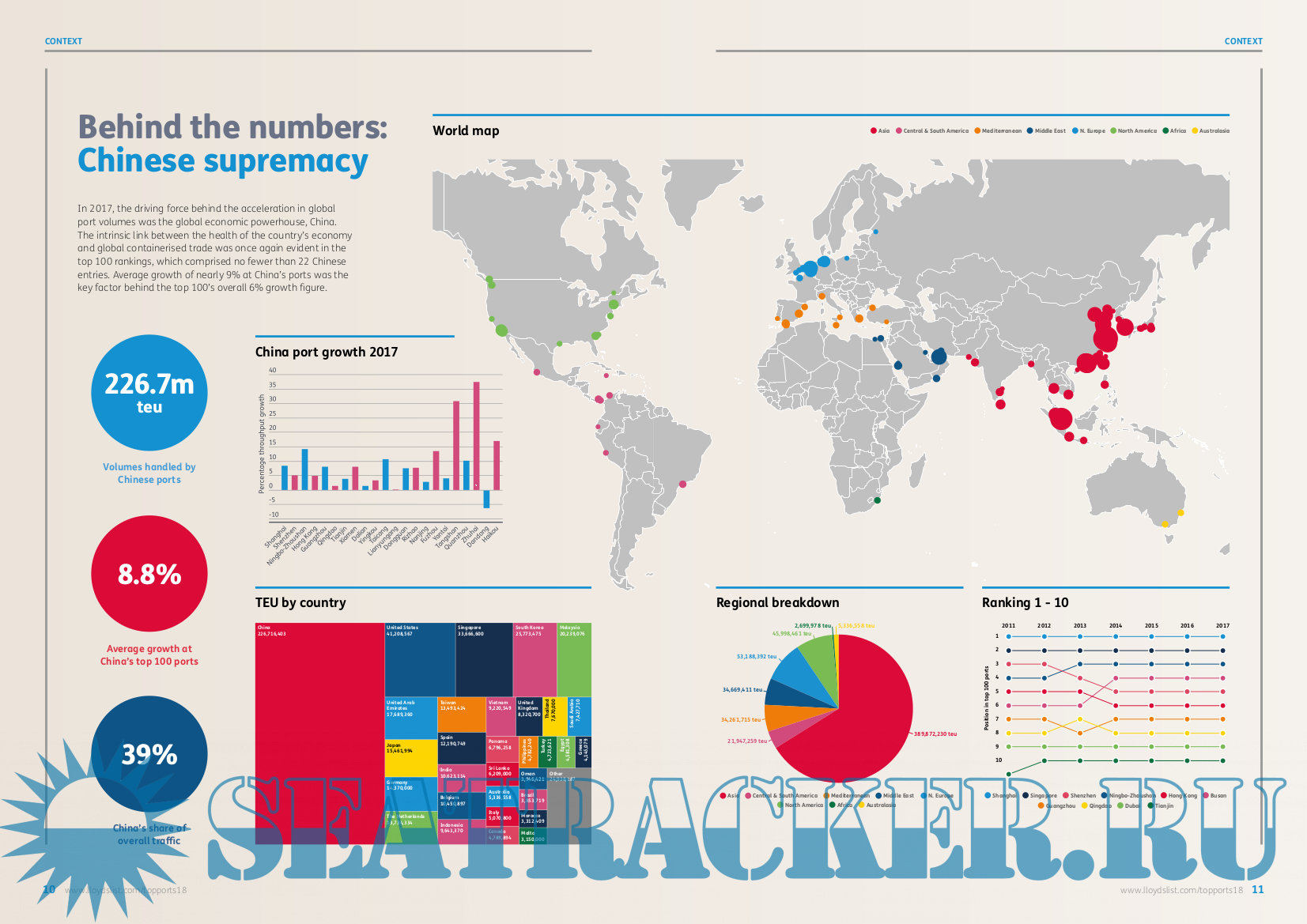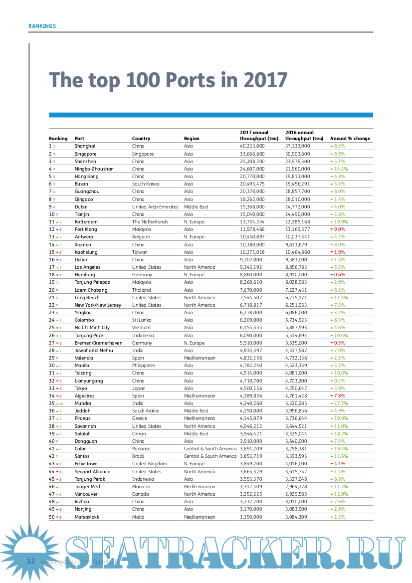 Description: The 2018 edition of Lloyd’s List’s One Hundred Container Ports shows that the industry’s elite port facilities handled a combined 588m teu in 2017, representing healthy 6% volume growth on the previous year.