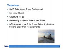 Year: 2008 Language: english Author: Han Yu (ABS) Genre: Presentation Publisher: ABS Format: PDF Quality: eBook Pages count: 48 Description: On Sept. 9, 2008, SNAME Texas Section held its regular 2nd Tuesday of the month Luncheon Seminar. Dr. Han Yu who is currently a Manager, Corporate Technology for ABS, gave this presentation. The International Association of Classification Societies (IACS) has adopted unified requirements concerning Polar Class vessels in March 2008. This presentation provided an overview of the IACS Polar Class rules and details of ice strengthening requirements. Some background information was presented to help users to better understand the limitations and proper application of Polar Class requirements.
