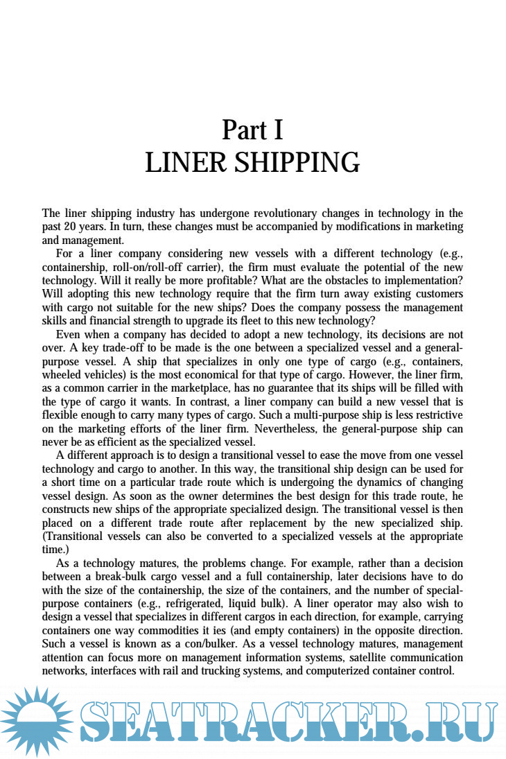 Description: Changing vessel technology presents a major challenge to shipping manufacturers. A change in vessel design can require major modifications of port facilities, information systems, and marketing techniques. While shippers must be ready to make changes in order to be competitive, they must be careful to choose technology that can be successfully and economically implemented in their market environment.