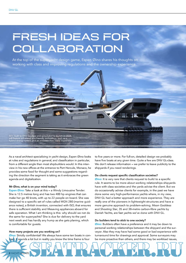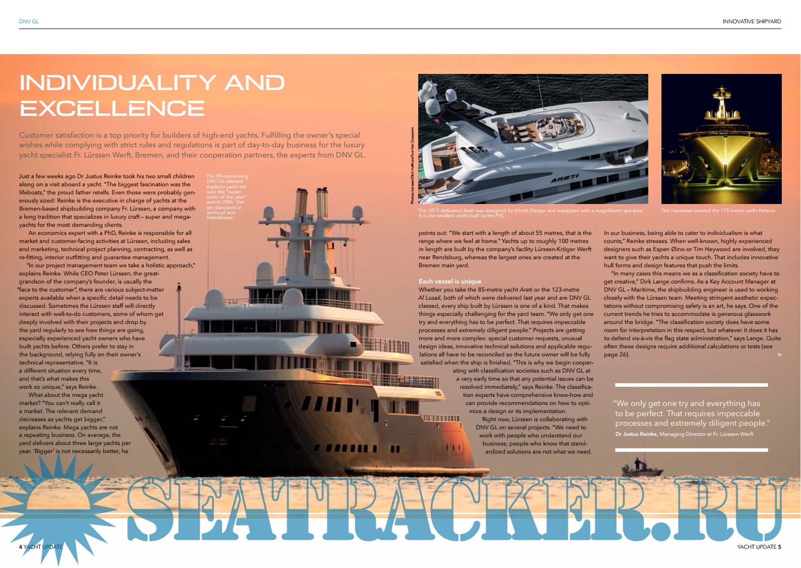 Year: 2018 Language: english Author: DNVGL Format: PDF Quality: eBook Pages count: 28 Description: Welcome to our first-ever issue of YACHT UPDATE! We at DNV GL are excited to expand our popular series of customer magazines into the world of motor and sailing yachts, a remarkable segment – always at the leading edge of what is technically possible, always pushing the limits and confronting us with fascinating new design ideas for the next awe-inspiring vessel. Designers, naval architects, material specialists and engineers work hand in hand to make owners’ visions come true, and our role is to make sure every yacht in our class, no matter how daring its design, will keep its crew and passengers safe and perform flawlessly.
