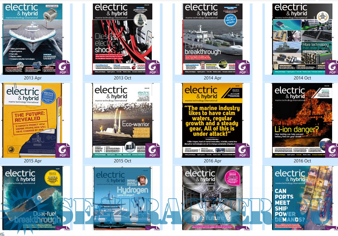 Year: 2013-2018 Language: english Author: UKi Media & Events Genre: Periodical (magazine) Publisher: UKi Media & Events Format: PDF Quality: eBook Pages count: from 80 till 120 per magazine Description: Electric & Hybrid Marine Technology International is the world’s first publication that is solely dedicated to electric and hybrid marine technologies, from small boats to cargo shipping and naval fleets. This 80/120-page, beautifully illustrated publication was circulated in March 2014 to a global readership of more than 15,000 heads of engine development, R&D chiefs, vessel designers and powertrain engineers within all of the world’s OE marine engine builders and Tier 1 suppliers, as well as all major boat designers and manufacturers. Electric & Hybrid Marine Technology International features case studies and white papers on the latest electric and hybrid powertrain systems, as well as high-profile interviews with leading figures from the marine propulsion industry. Additional info: The magazine was started from 2013 and it is published twice per year (April & October).