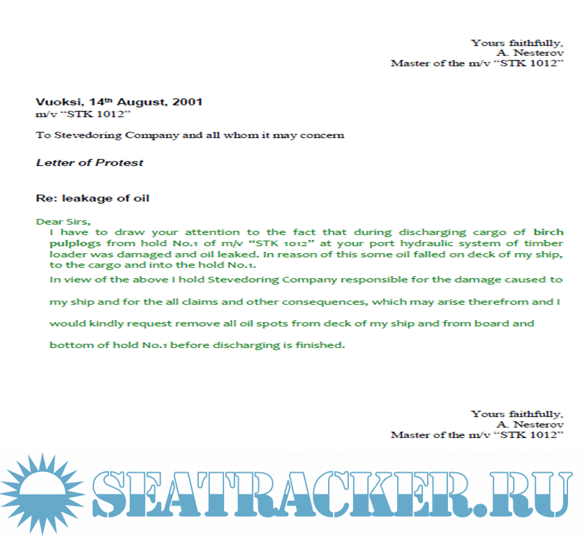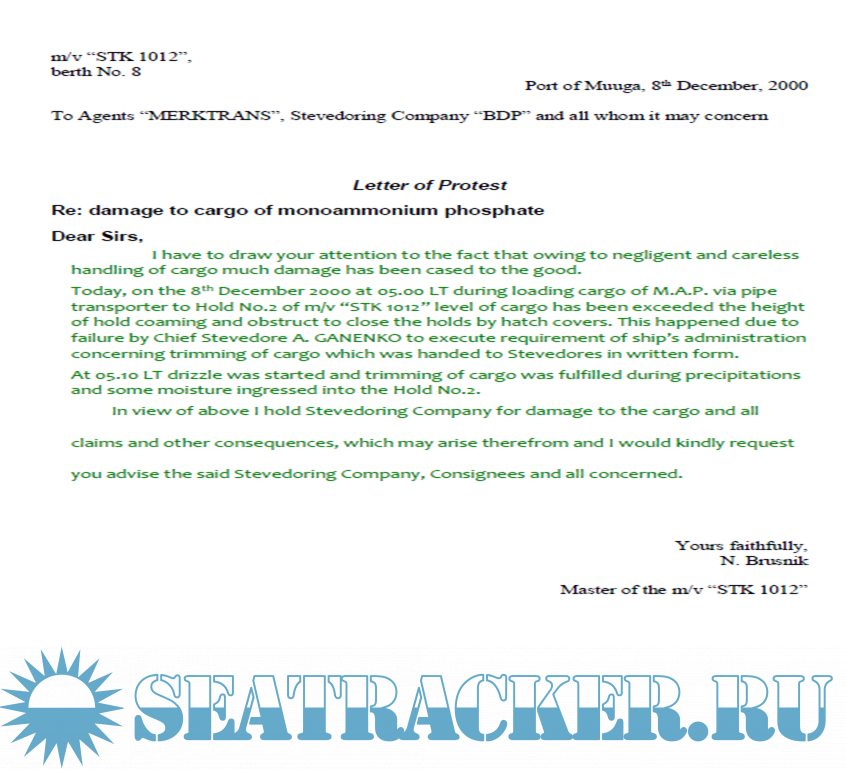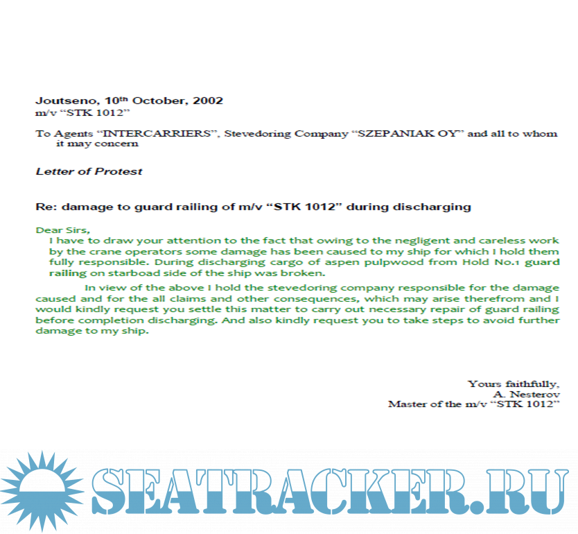 Описание: Образцы писем-протестов на разные случаи в морской практике.