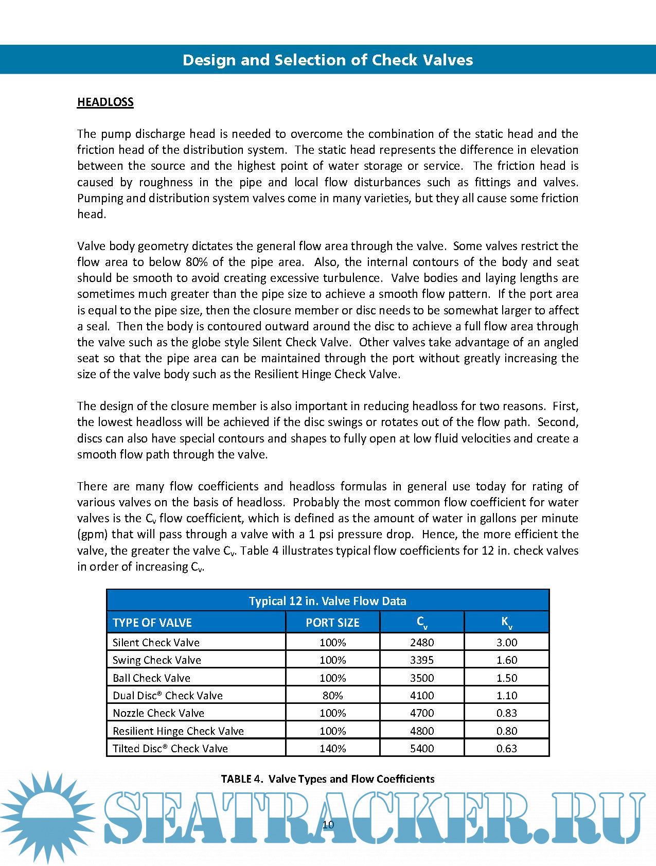 selection of the pump discharge check valve, whose purpose is to automatically open to allow