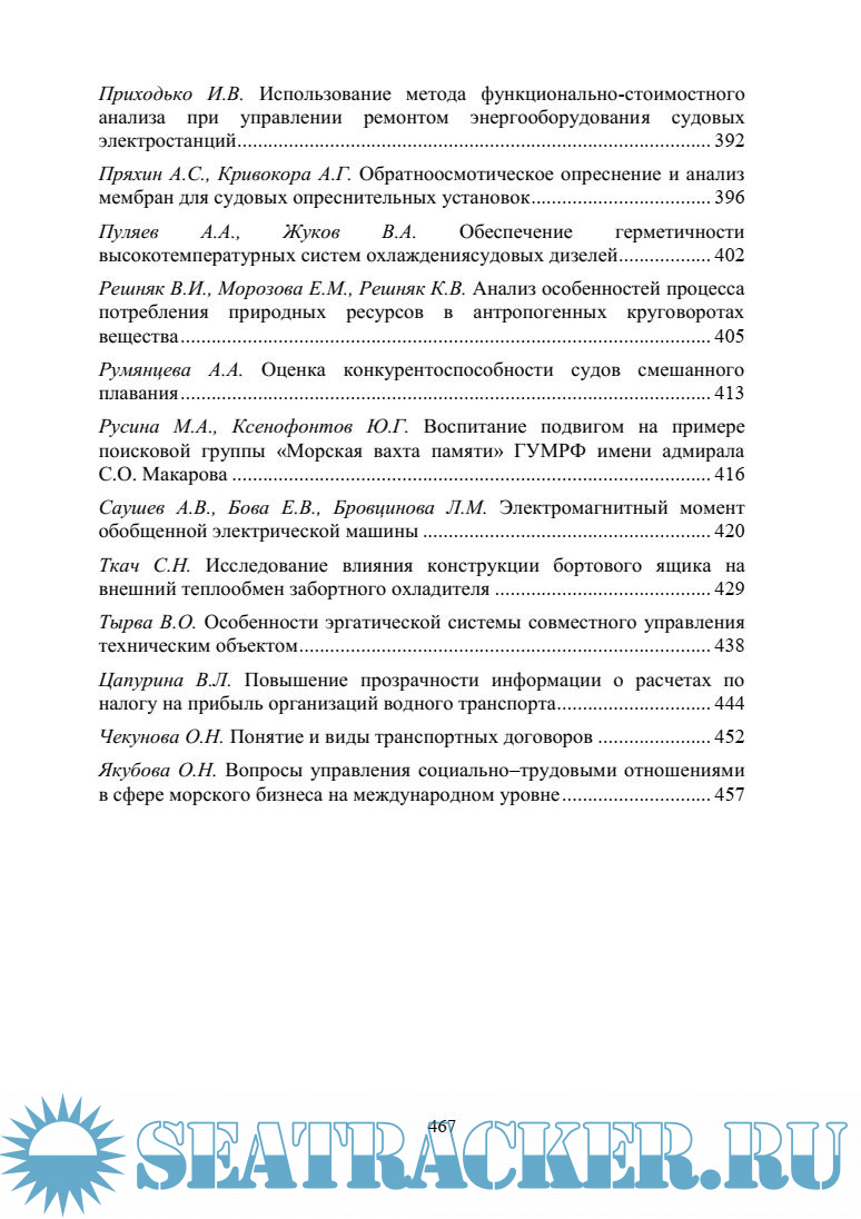 Сборник научных трудов профессорско-преподавательского состава ГУМРФ им. адм. Макарова