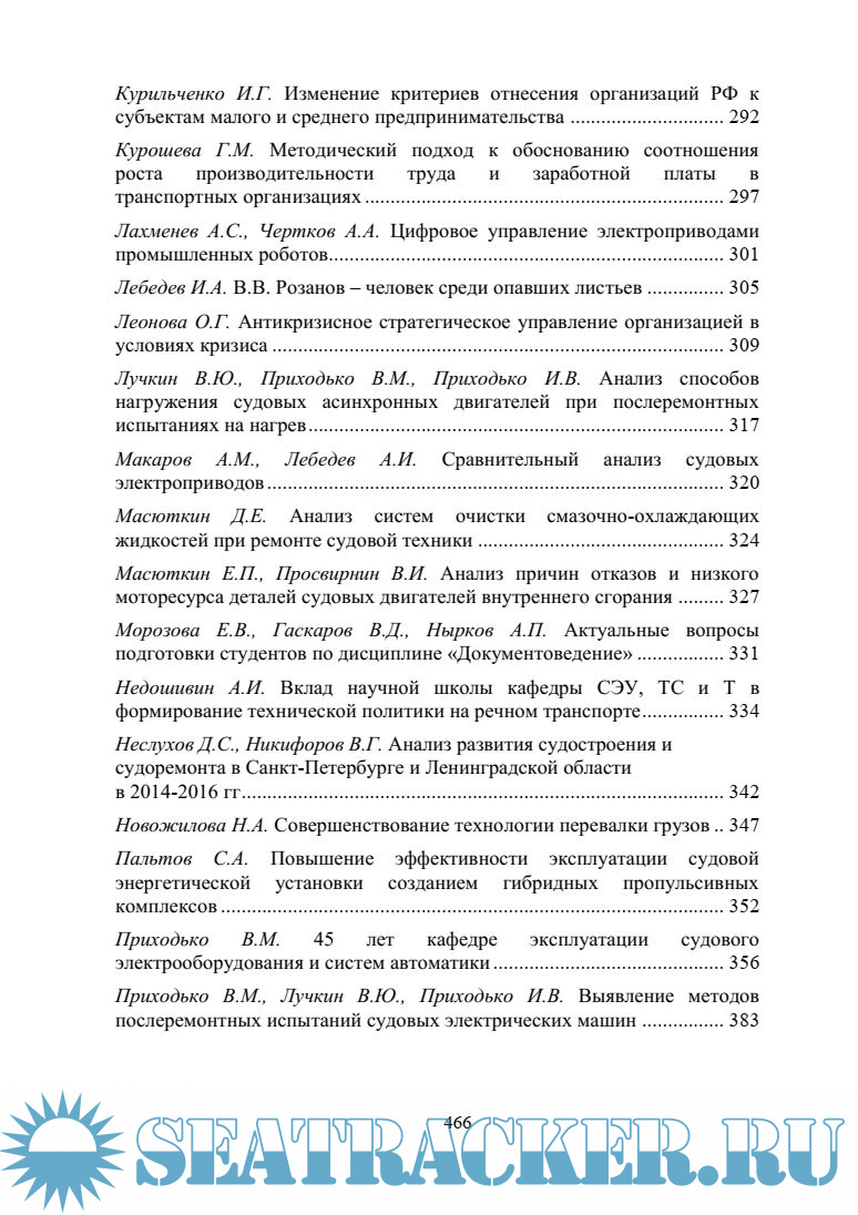 Опубликованы результаты прикладных научных исследований профессорско-преподавательского состава и научных сотрудников Государственного университета морского и речного флота имени адмирала С. О. Макарова и участников конференции, по следующим направлениям:
