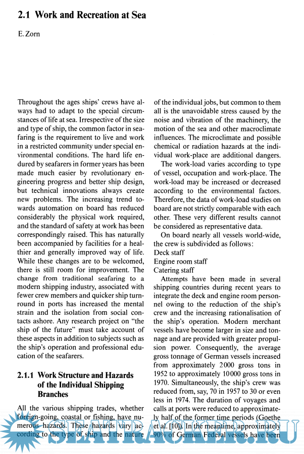 Year: 1984 Language: english Author: W. H. G. Goethe, E. N. Watson, D.T. Jones Genre: Handbook Publisher: Springer International Publishing Edition: 1 ISBN: 978-3-642-69415-8 Format: PDF Quality: OCR without errors Pages count: 507 Description: International cooperation on the health of seafarers began many years ago. As early as 1921, an international convention regarding this matter was presented to govern ments of maritime countries for ratification. The First World Health Assembly, in 1948, recommended that WHO should establish, with the International Labour Of fice, a Joint Committee on the hygiene of seafarers. The first session of this Com mittee, held in 1949, defined the problems affecting the health of seamen and made a number of recommendations. In the opinion of this Joint Committee, the health of seamen called for interna tional attention for a nu mb er of reasons. By the nature of his work, the seafarer is obliged to travel from country to country and is exposed to great variations of cli mate and also to any disease that may be prevalent in the port of call. He may there fore become a carrier of disease, so that the protection of his health is of importance not only to himself and the other members of the crew but also to the populations of other countries he visits. Yet, on account ofthe nature ofhis employment, it is diffi cult to provide the seafarer with the same standard of health care that is gene rally available to other sections of the population.