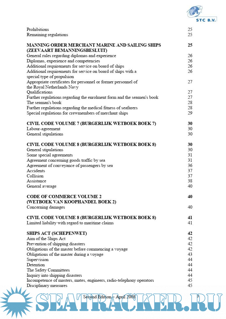 As it is an impossible task to deal with all this in detail, only outlines have been stated in this book. This will provide the Master, the Chief Officer and the Chief Engineer, which intend to work on board of any of Duch fleet vessel, with minimal requsted knowlege of Duch legislations.
