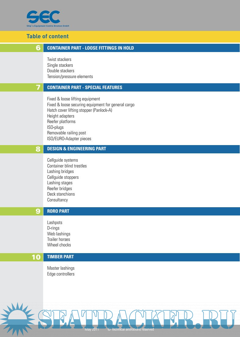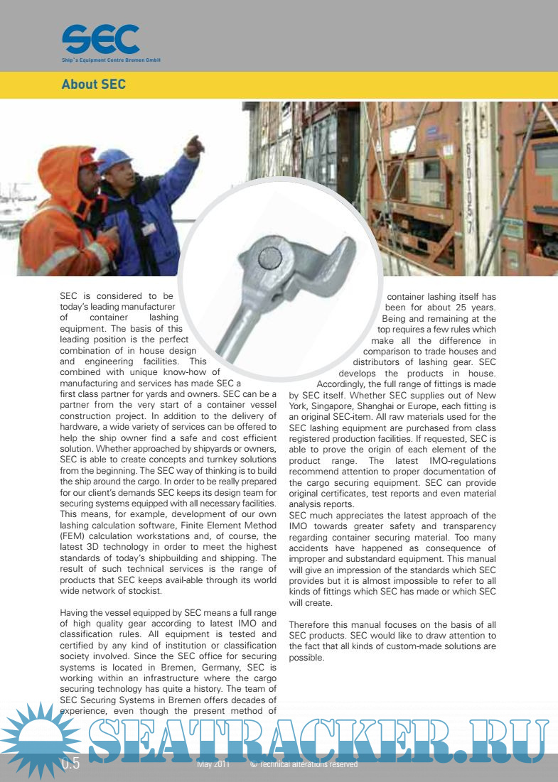 Description: Ship's Equipment Centre Bremen (SEC) is considered to be today's worldwide leading manufacturer of container lashing equipment.