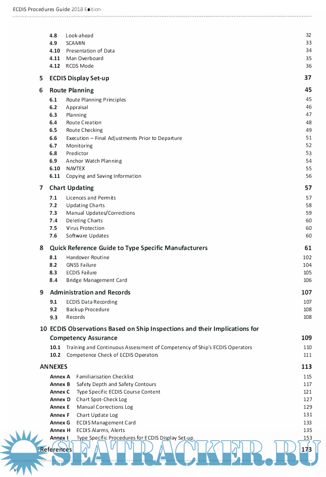 Description: In line with STCW requirements, navigating officers are required to maintain competence in their watchkeeping routines and practices when using ECDIS. The ECDIS Procedures Guide provides a framework, as well as supporting background information and useful checklists, to aid officers in fulfilling these requirements and to help companies implement best practices in the use of ECDIS on board their ships. Information on the majority of ECDIS operations and techniques is included, such as chart updates, route creation and checking and ECDIS safety functions. This is supplemented by a useful ECDIS Management Card and example logs for chart spot checks, manual corrections and chart updates.