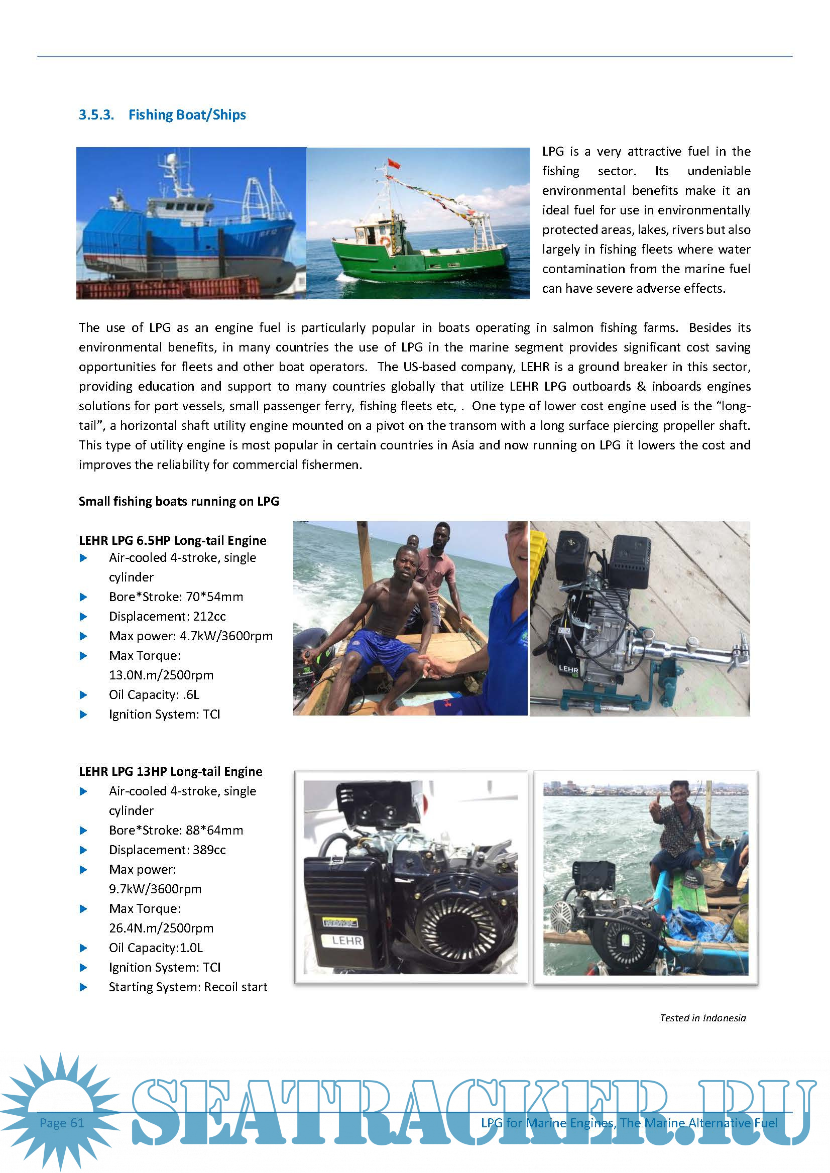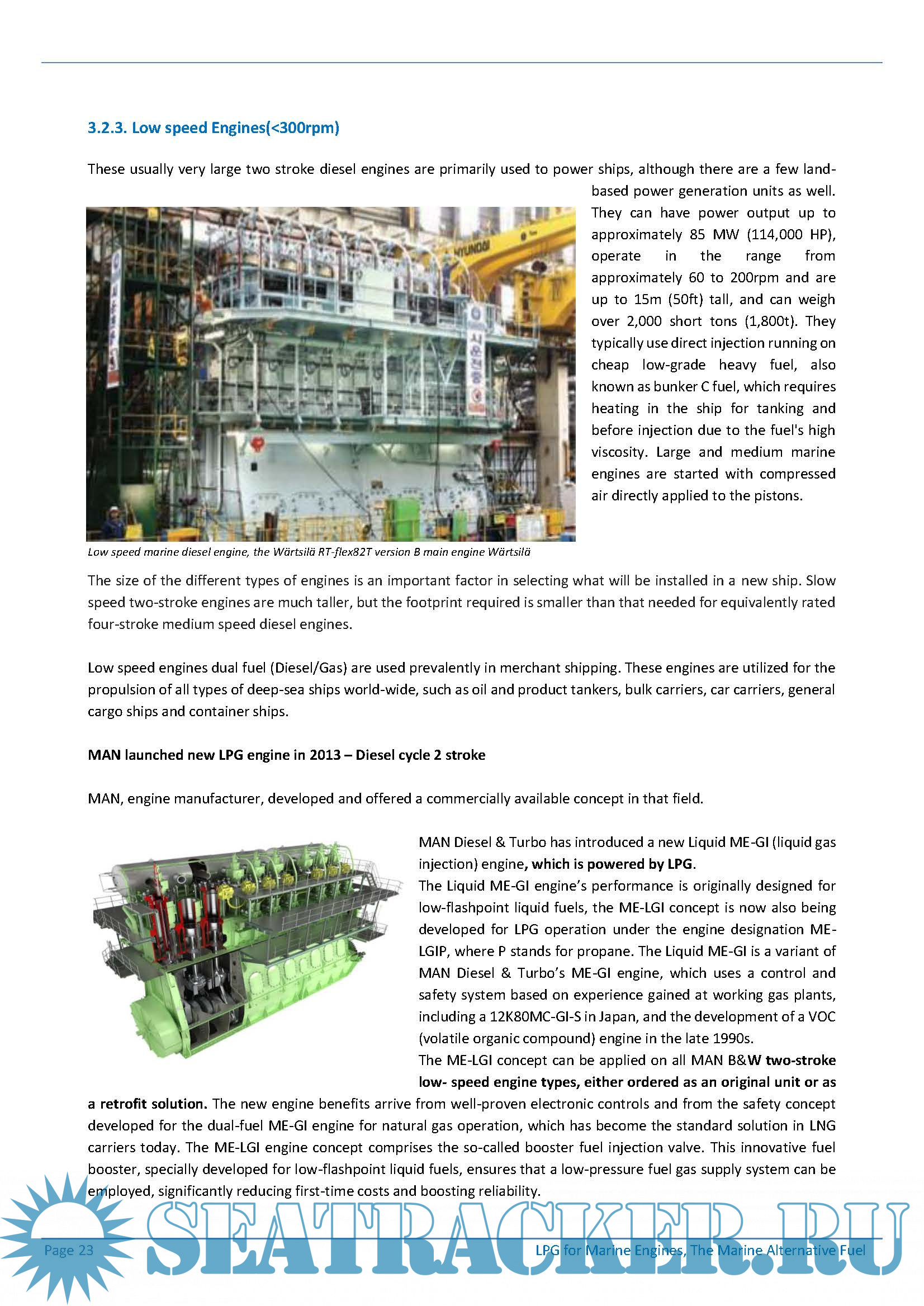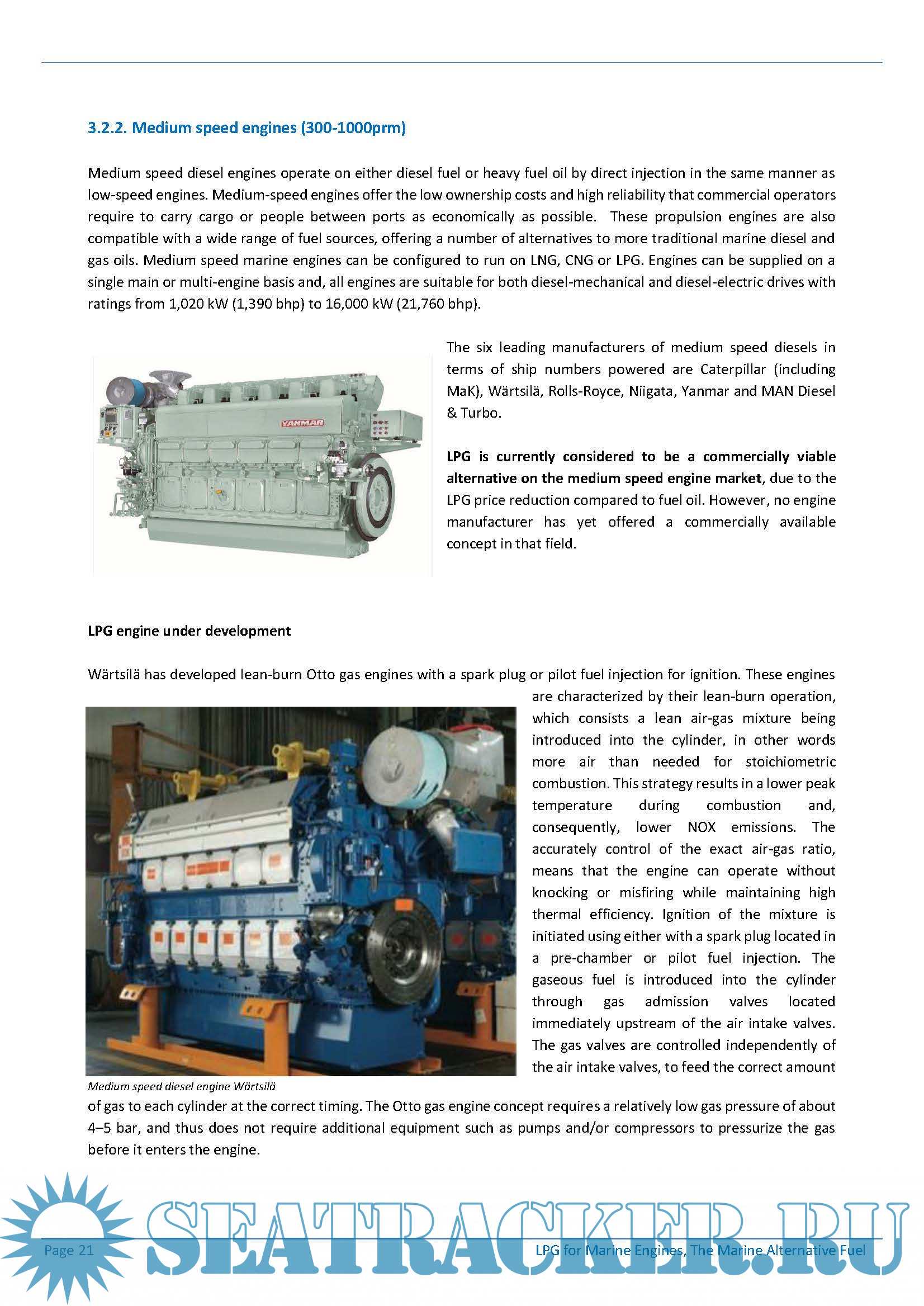 - A scan of the market for Marine LPG engines and even more in this case for Marine engines and particularly those Gas Marine engines, which after additional development or conversion could use LPG as a fuel. This scan covers primarily Europe, US, Asia, Japan and some highlights from other parts of the world.