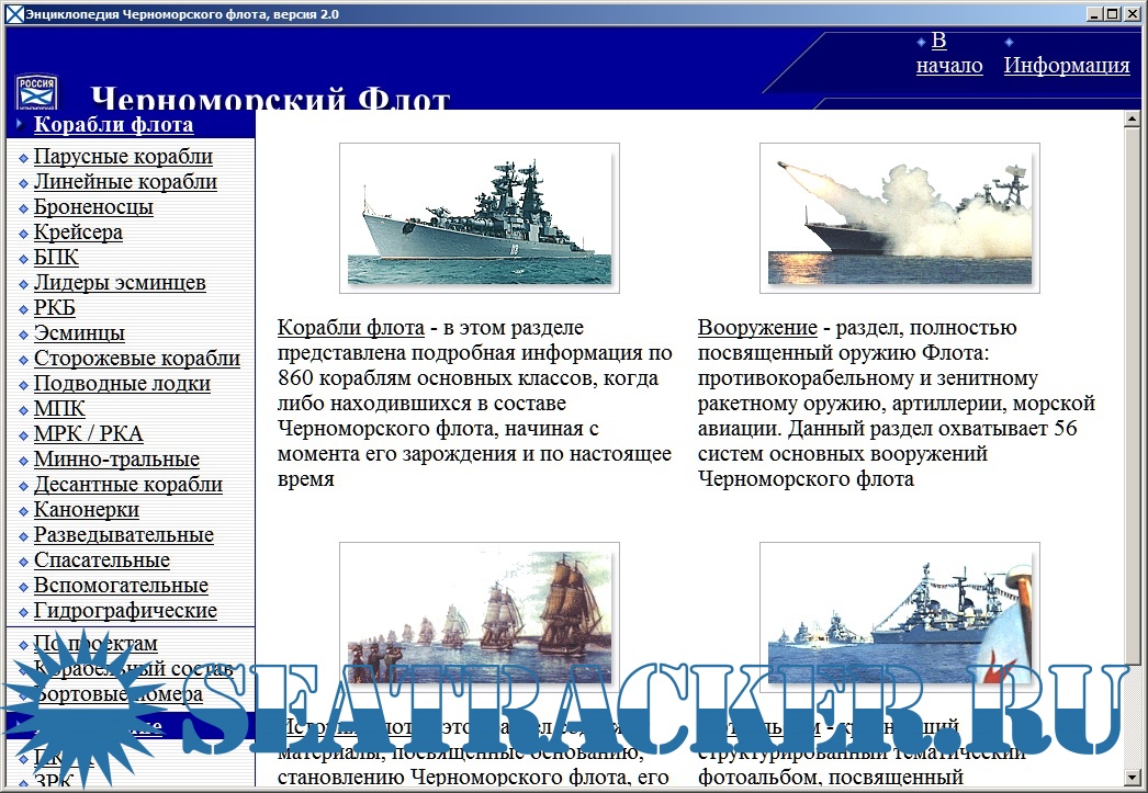 Описание: Энциклопедия Черноморского флота - бесплатная программа, которая содержит в себе подробные описания 860 кораблей Черноморского флота всех основных классов (от парусных линкоров, броненосцев, крейсеров и подлодок - до ракетных катеров и вспомогательных судов) с подробным отражением их тактико-технических характеристик, истории создания и строительства каждого корабля, его службу в составе флота, описания 56 систем морских вооружений (морская артиллерия, противокорабельные ракетные комплексы, зенитно-ракетные комплексы, флотская авиация). Также в Энциклопедию Черноморского флота включены статьи по истории Черноморского флота. Программа содержит более 1000 фотографий и иллюстраций.
