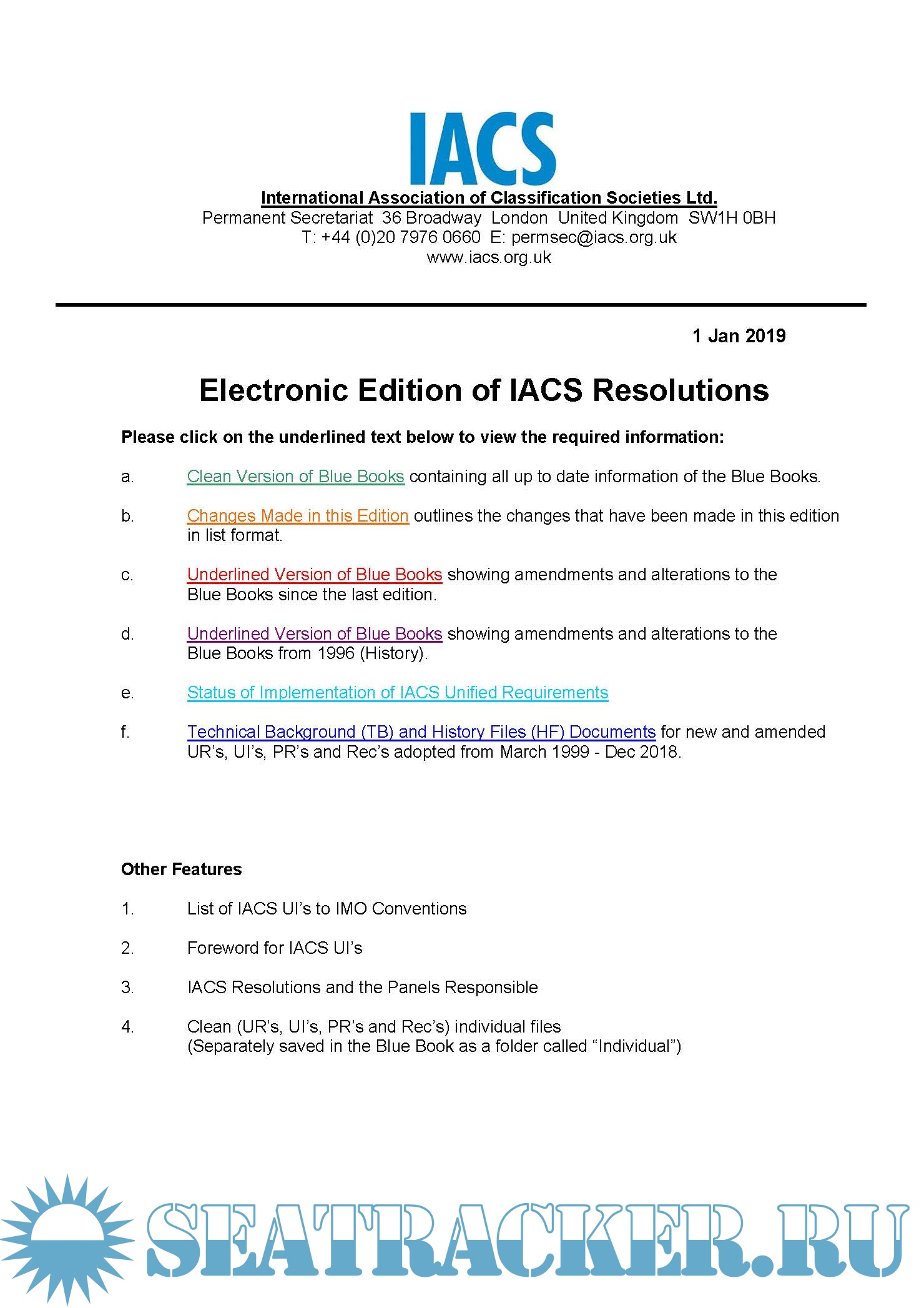 Description: "2019 Blue Book" contains the latest adopted IACS publications as on 1 January 2019 as well as previous revisions of IACS publications and historical data. The Blue Book is updated and published once a year only, next Blue Book will be issued in January 2020.