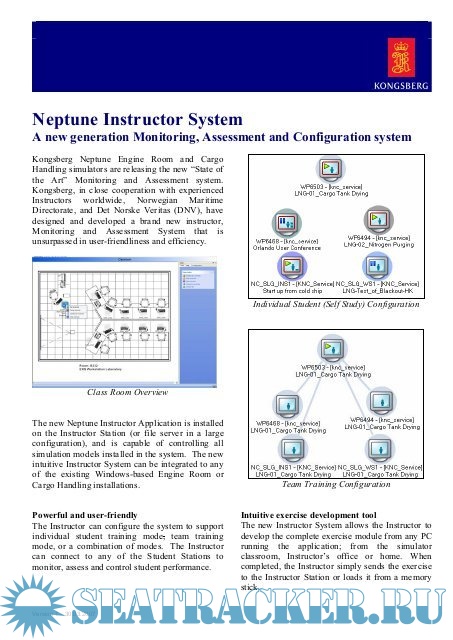 Description: Kongsberg Maritime, a world leading supplier of maritime simulation systems has introduced a next generation monitoring, assessment and configuration tool for its Neptune Engine Room and Cargo Handling simulators. The Neptune Instructor System has been designed to enhance the quality of simulation training by providing complete, user-friendly control of student exercises.