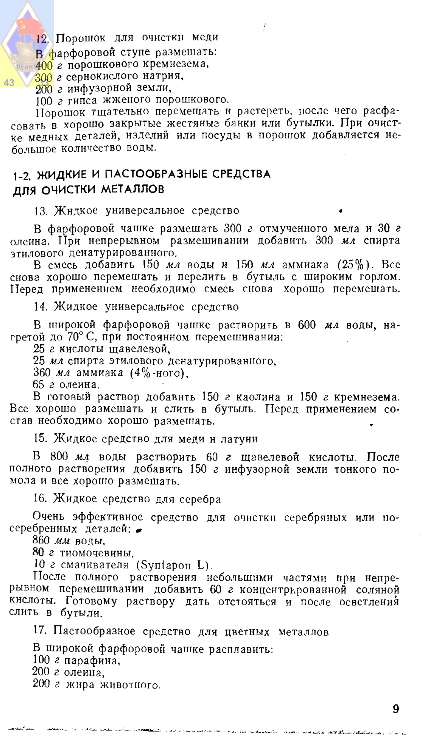 Описание: Справочник содержит рецептуру и описание способов приготовления различных средств для склеивания, шпаклевания, очистки металлов, стекла, фарфора и других материалов, обработки их поверхности (полирования, травления, окрашивания гальванических покрытий). Описаны также специальные чернила для нанесения обозначений на эти материалы.