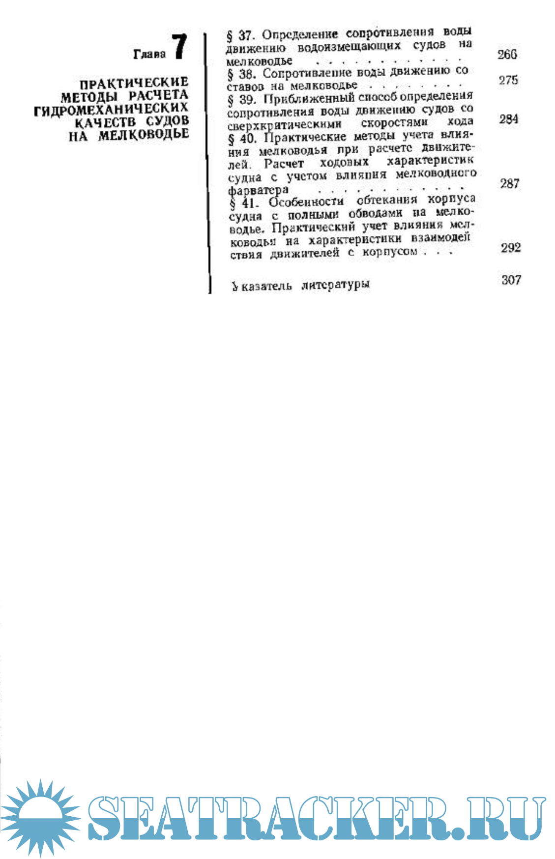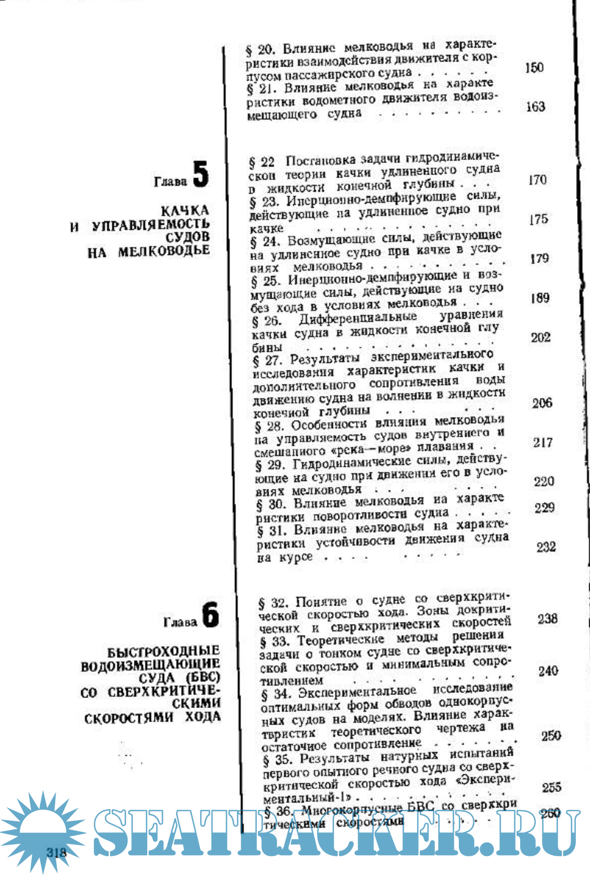 Рассматриваются волновое и вязкостное сопротивление воды движению судов, изменение посадки судов на ходу, особенности работы движителей, качка и управляемость в условиях мелководья.