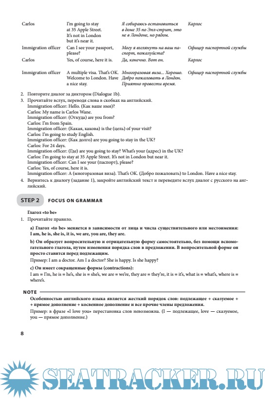 Работая с учебником самостоятельно, следует помнить, что ваша основная задача — научиться понимать английскую речь на слух и заговорить. Путем многократного прослушивания и повторения, проговаривания вслух понятных вам текстов, ответов на вопросы дикторов вы сможете сами натренировать свои речевые навыки и обязательно заговорите по-английски. Вы ведь уже выучили когда-то русский по этому принципу, а значит, справитесь и с английским!!