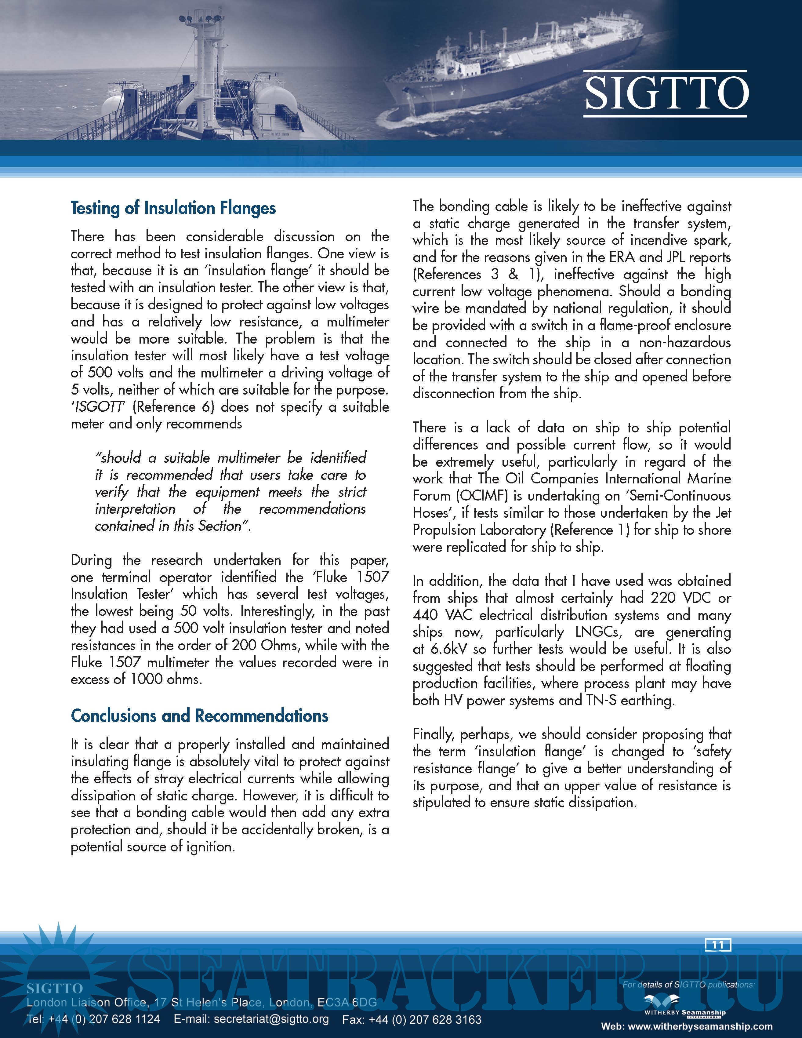 A Justification into the Use of Insulation Flanges (and Electricity Discontinuous Hoses) at the Ship/Shore and Ship/Ship Interface