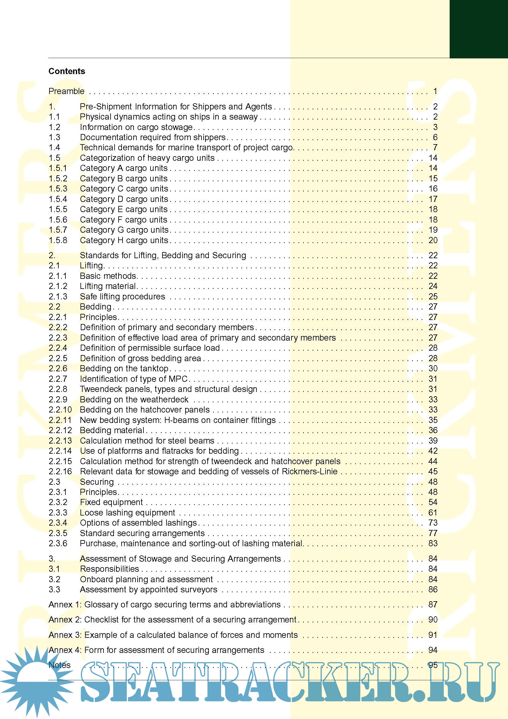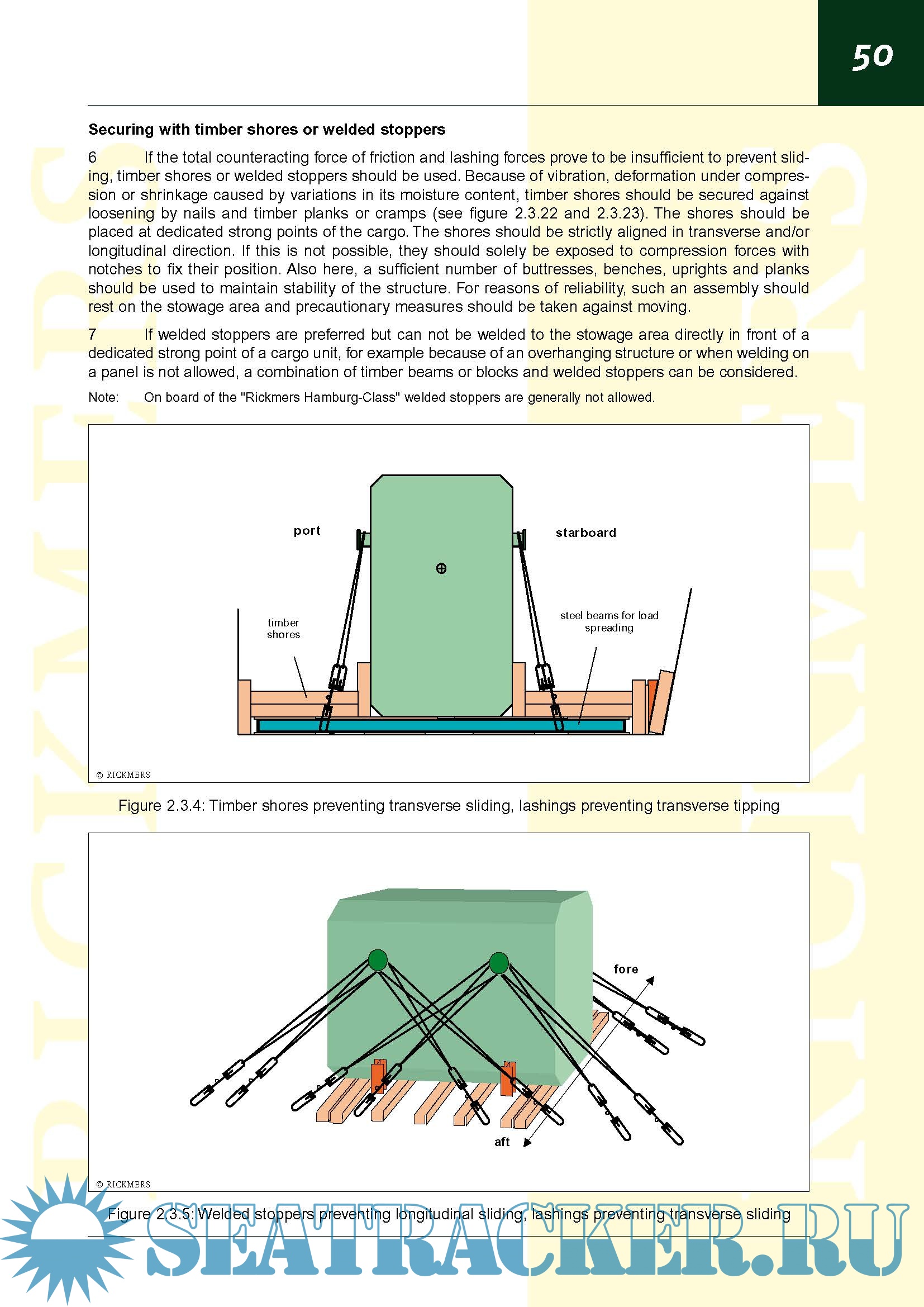 Description: This Rickmers Standard is considered the main reference for planning, handling, stowage and securing/lashing of project cargo in general. It applies to all vessels chartered and/or owned by Rickmers-Linie.