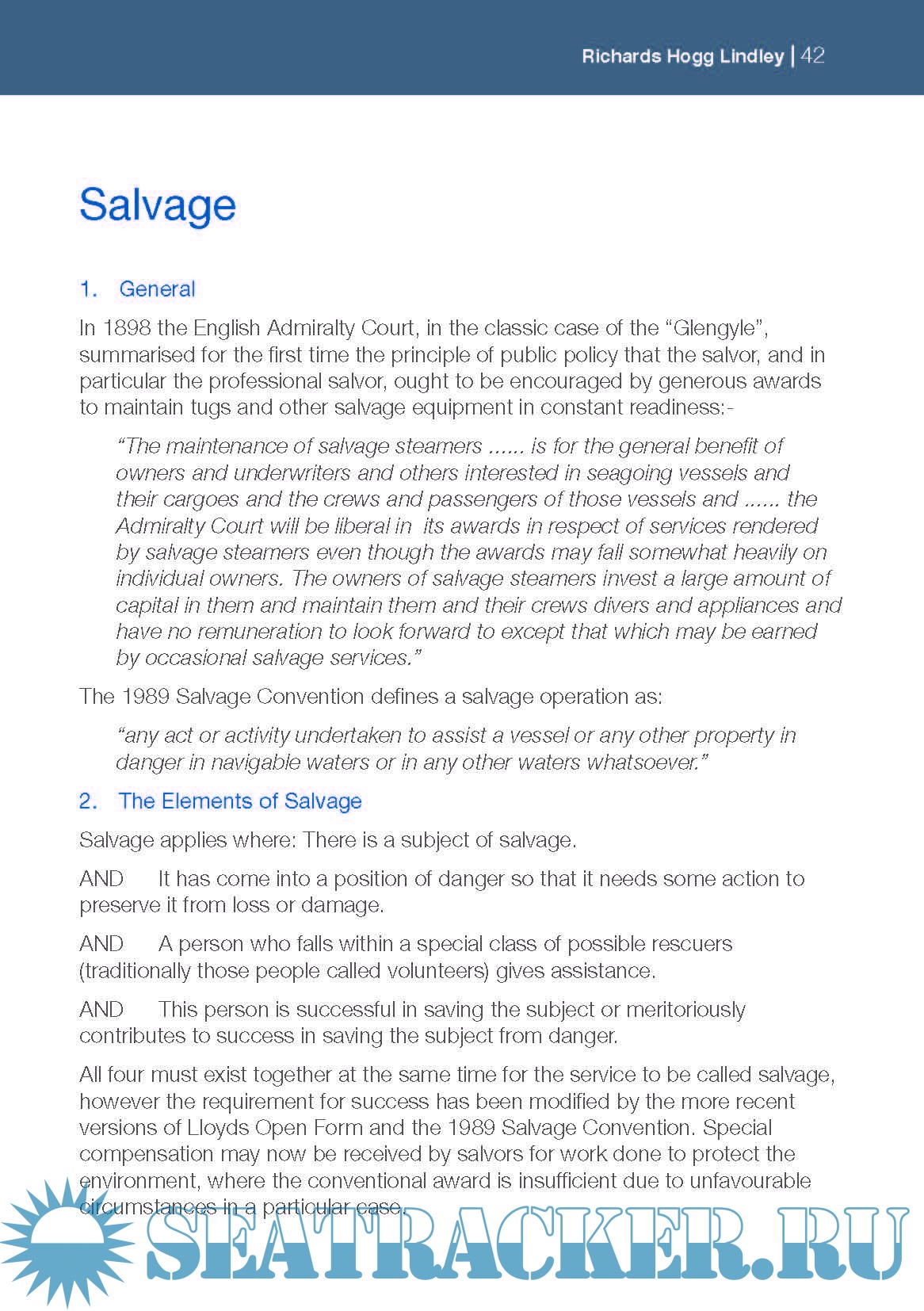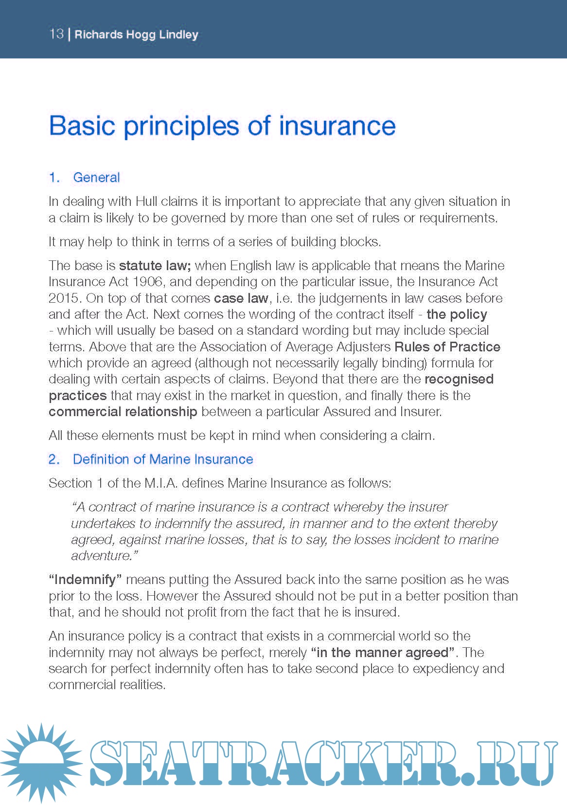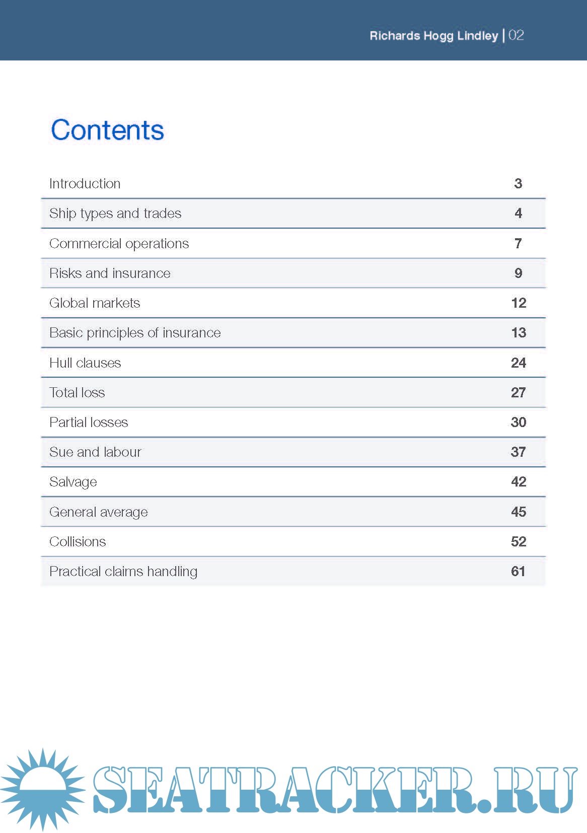 Year: 2018 Language: english Author: Richards Hogg Lindley Genre: Guide Publisher: Richards Hogg Lindley Format: PDF Quality: eBook Pages count: 64 Description: This booklet is designed to give an introductory insight into shipping generally, the various types of insurances available in relation to ships and lastly the adjusting of claims and the general claims process. Additional info: New 2018 version