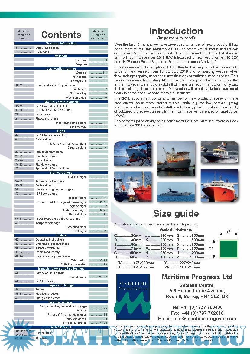 Description: This supplement would inform and refresh the current Maritime Progress Book (2013). This has turned out to be fortuitous in as much as in December 2017 IMO introduced a new resolution A1116 (30) namely “Escape Route Signs and Equipment Location Markings”.
