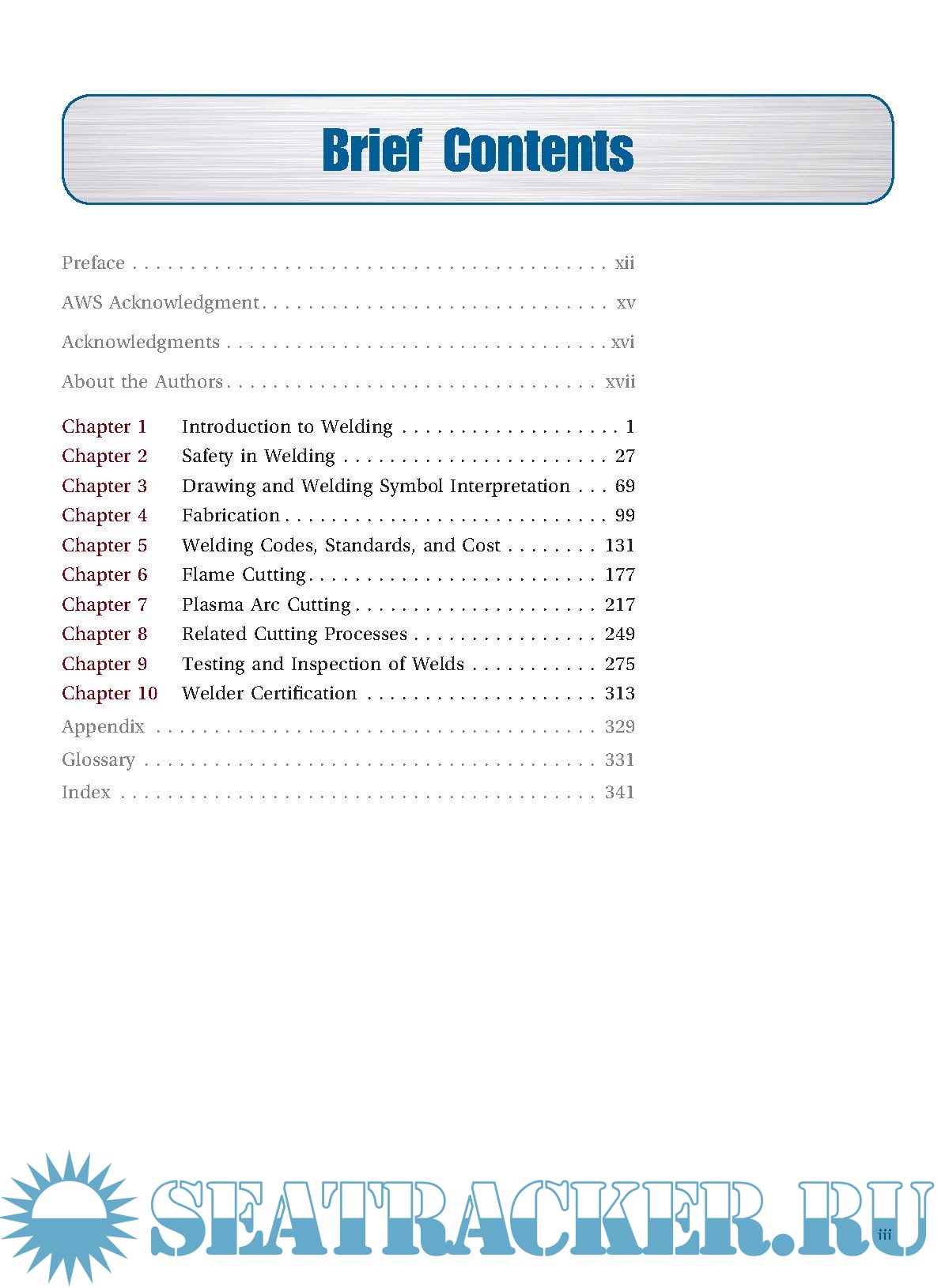 Year: 2010 Language: english Author: Larry Jeffus and Lawrence Bower Genre: Technical book Publisher: Delmar, Cengage Learning Edition: 1st ISBN: 978-1435427884 Format: PDF Quality: eBook Pages count: 367 Description: Welding: Skills, Processes, and Practices for Entry-Level Welders is an exciting new series that has been designed specifically to support the American Welding Society's (AWS) SENSE EG2.0 training guidelines. Offered in three volumes, these books are carefully crafted learning tools consisting of theory-based texts that are accompanied by companion lab manuals, and extensive instructor support materials. With a logical organization that closely follows the modular structure of the AWS guidelines, the series will guide readers through the process of acquiring and practicing welding knowledge and skills. For schools already in the SENSE program, or for those planning to join, Welding: Skills, Processes, and Practices for Entry-Level Welders offers a turnkey solution of high quality teaching and learning aids. This Book 1 is about Occupational Orientation; Safety and Health; Drawing and Symbol Interpretation; Thermal Cutting and Weld Inspection Testing and Codes. Features: Produced in close collaboration with experienced instructors from established SENSE programs to maximize the alignment of the content with SENSE guidelines Assists learners to produce workmanship samples that meet AWS's specifications for welder performance qualification. Hundreds of four-color figures, diagrams and tight shots of actual welds guide beginners to an understanding of the most widely used welding processes Coverage of Key Indicators from AWS is indicated in the margin by a torch symbol and a numerical reference.