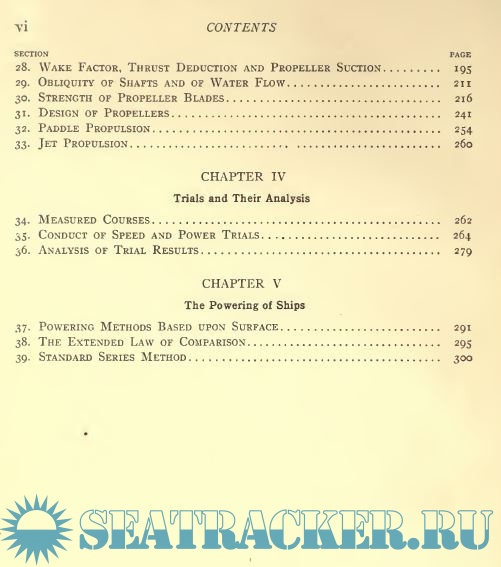Year: 1910 Language: english Author: D. W. Taylor Genre: Textbook Publisher: JOHN WILEY & SONS Format: PDF Quality: Scanned pages Pages count: 328 Description: THE intention of this work is to treat in a consistent and connected manner, for the use of students, the theory of resistance and propulsion of vessels and to give methods,, rules and formulae which may be applied in practice by those who have to deal with such matters. The contents are based largely upon model experiments, such as were initiated in England nearly half a century ago by Mr. William Froude and are now generally recognized as our most effective means of investigation in the field of resistance and propulsion. At the same time care has been taken to point out the limitations of the model experiment method and the regions where it ceases to be a reliable guide. During the years that the author has directed the work of the U. S. Experimental Model Basin many results obtained there have been published in the Transactions of the Society of Naval Architects and Marine Engineers and elsewhere, so, naturally, the experiments at the U. S. Model Basin have been made large use of wherever applicable. It will be found, however, that they are in substantial agreement with the many published results of the work of other experimental establishments of this kind. Although the coefficients and constants for practical application are mainly derived from the author's experience at the Model Basin and elsewhere, and are necessarily general in their nature, endeavor has been made wherever possible to develop formulae and methods in such a manner that naval architects and engineers using the book may, if they wish, adopt their own constants derived from their special experience.