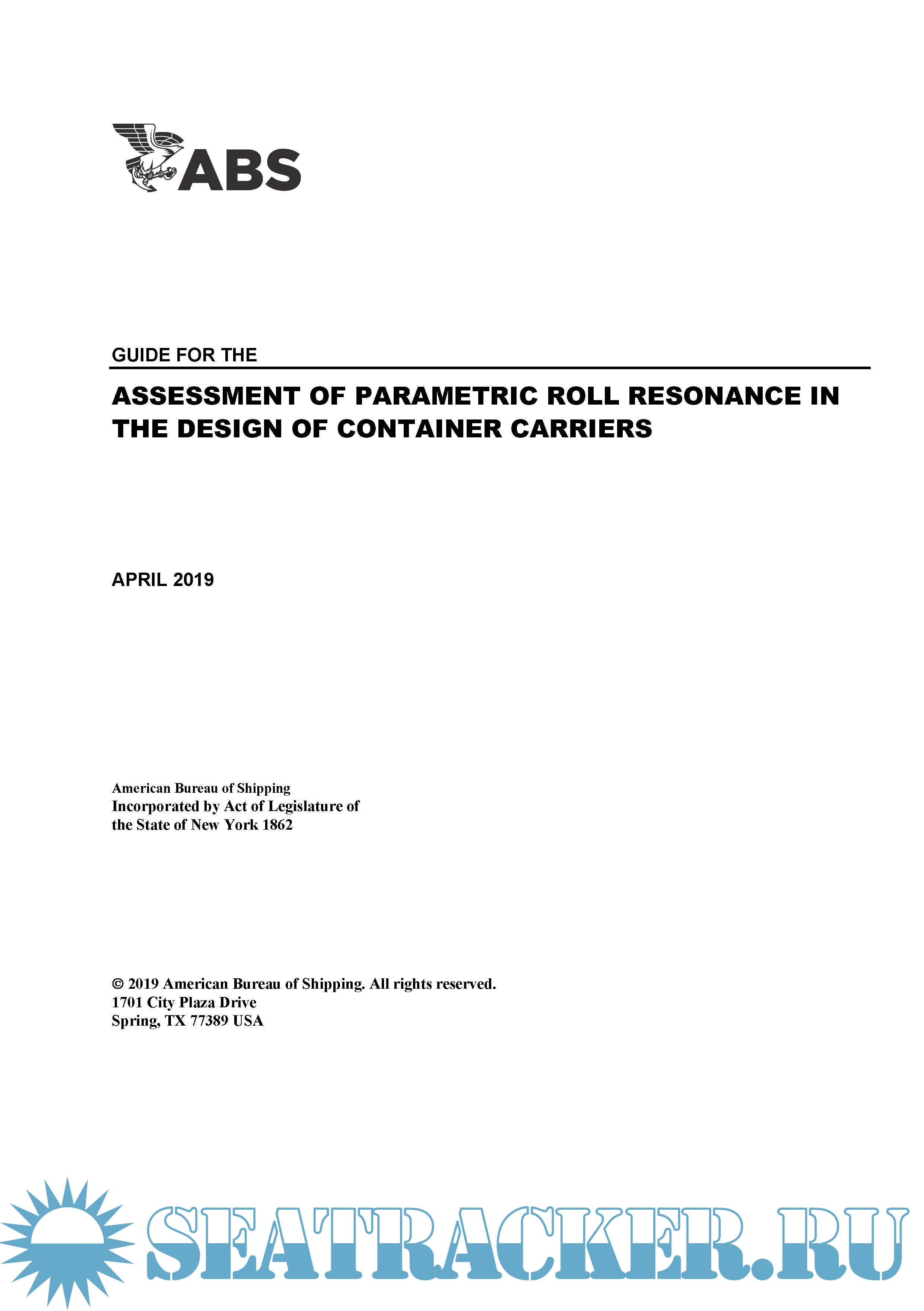 Description: The main purpose of this Guide is to supplement the Rules and the other design and analysis criteria that ABS issues for the classification of container carriers in relation to parametric roll resonance phenomenon.