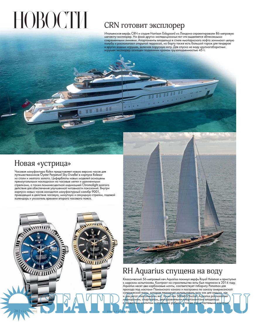Основные рубрики журнала:«Новости» - люди, события, яхты и не только.