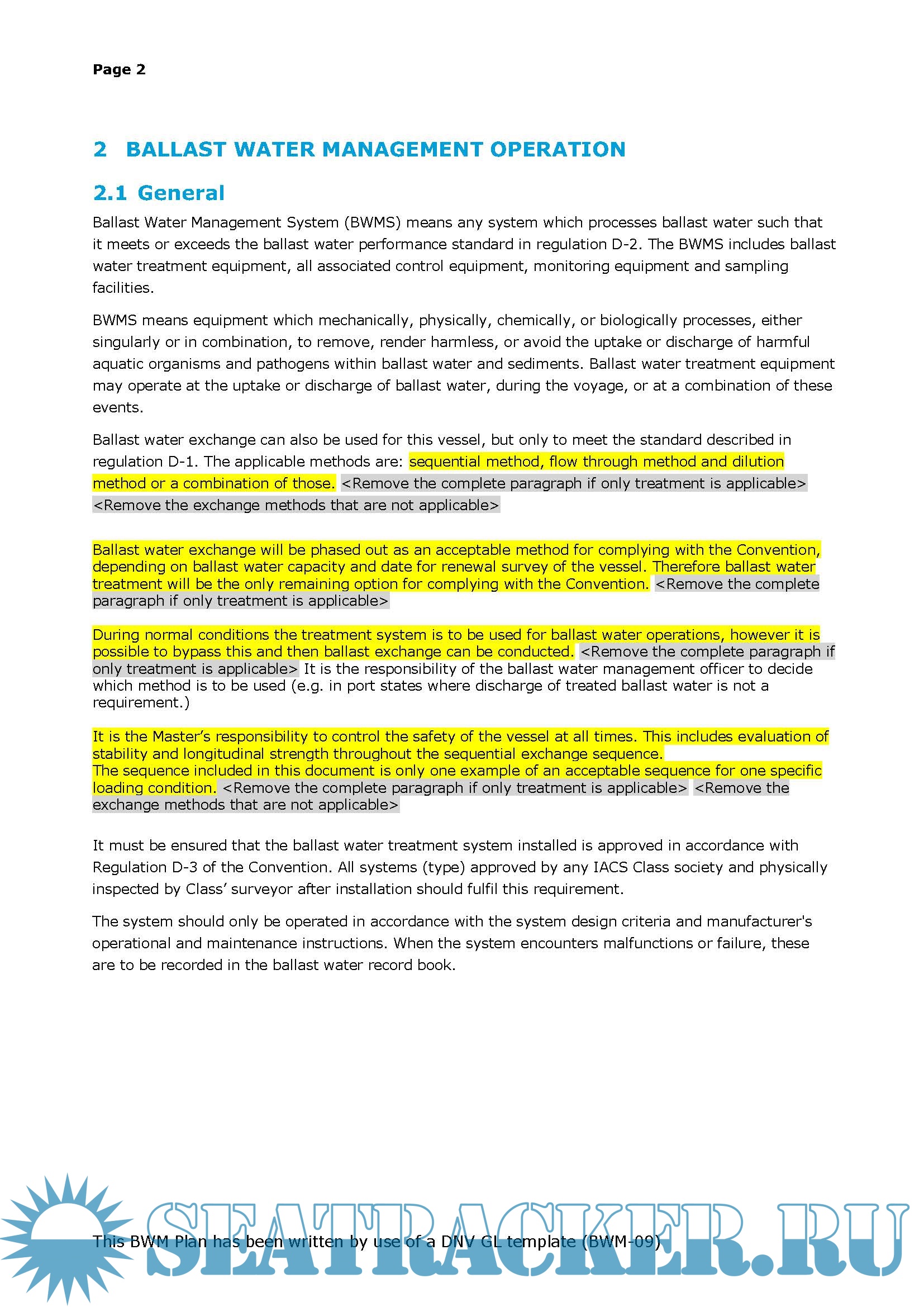 Ballast Water Management Plan DNV template