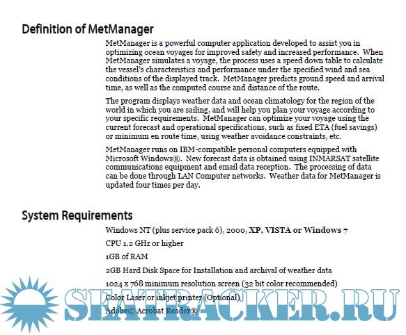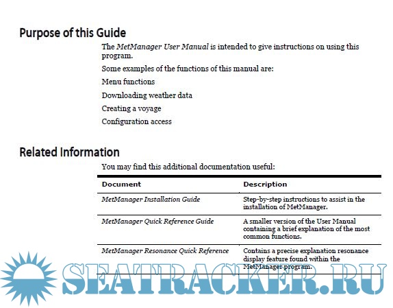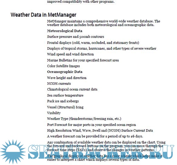 Year: 2010 Language: english Author: Unknown Genre: Manual Publisher: Chartco Format: PDF Quality: eBook Pages count: 99 Description: The MetManager User Manual is intended to give instructions on using Met Manager programme. Some examples of the functions of this manual are: Menu functions Downloading weather data Creating a voyage Configuration access