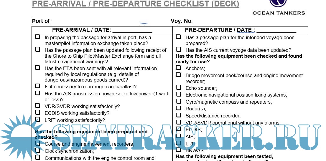 check list in word, pdf and xls file013 - Pre-Arrival Pre-Departure Checklist (Deck).doc