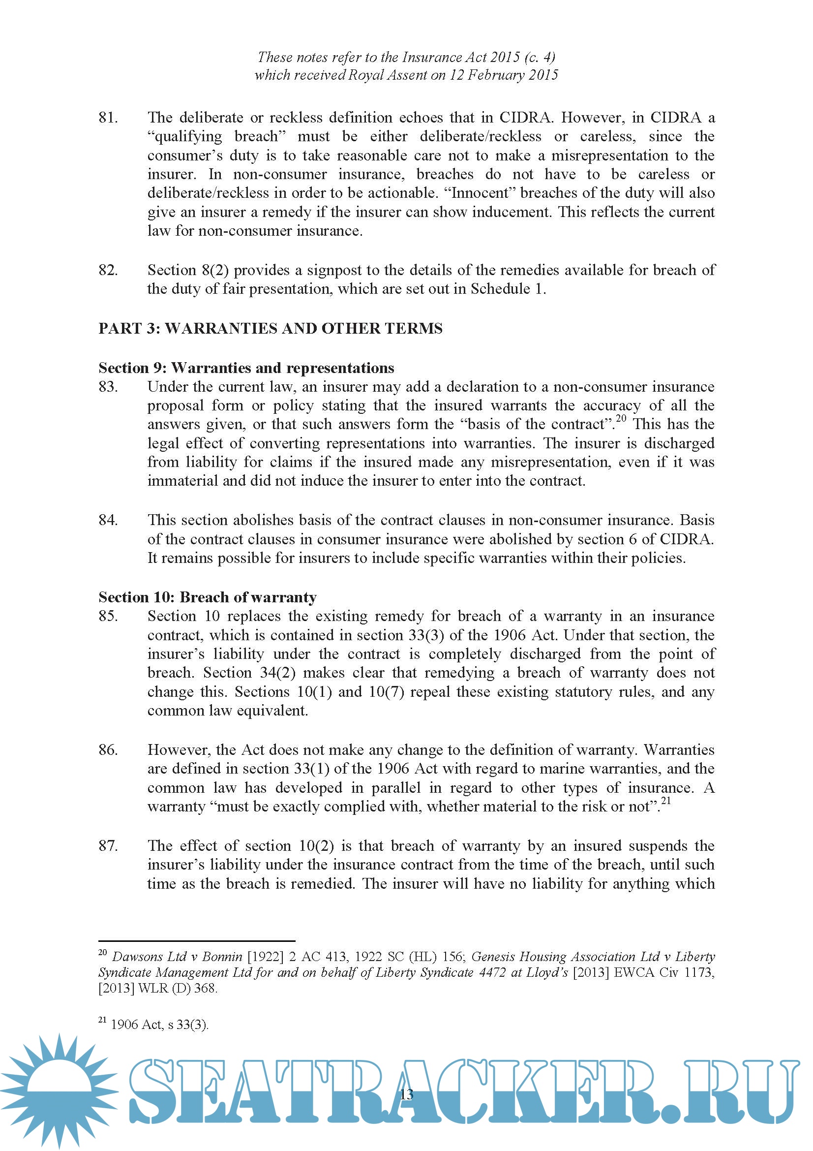 2. The explanatory notes relate to the Insurance Act 2015 which received Royal