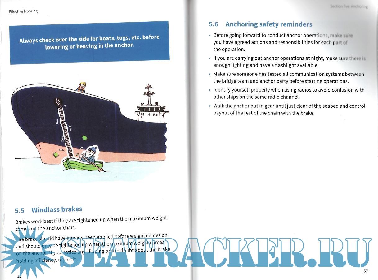 Year: 2019 Language: english Author: OCIMF Genre: Guide Publisher: Witherby Publishing Group Ltd. Edition: 4th ISBN: 978-1-85609-807-6 Format: PDF Quality: Scanned pages Pages count: 41 Description: Mooring is one of the most complex and dangerous operations for ship and terminal crew. If something goes wrong, the consequences can be severe. Effective Mooring gives crew a general introduction to mooring and guidance on how to stay safe during mooring operations. It is written in an easy-to-understand style for seafarers worldwide and can be used as a training guide for both new and experienced crew. Produced by the Oil Companies International Marine Forum (OCIMF), the book is written for crew on board oil tankers, barges and terminals, but the principles can be applied to any vessel. This fourth edition of Effective Mooring is aligned with the guidance in OCIMF’s Mooring Equipment Guidelines, Fourth Edition (MEG4), which contains more detailed technical information on the design and maintenance of mooring systems. Additional info: New in Effective Mooring, Fourth Edition: Emphasis on the whole mooring crew being responsible for safety. Removed guidance on marking snap-back zones: the whole mooring deck is a danger zone. More guidance on barges. Simplified language and more cartoons, to make it easier to read. Addresses human factors, e.g. communication, fatigue, situational awareness, etc.