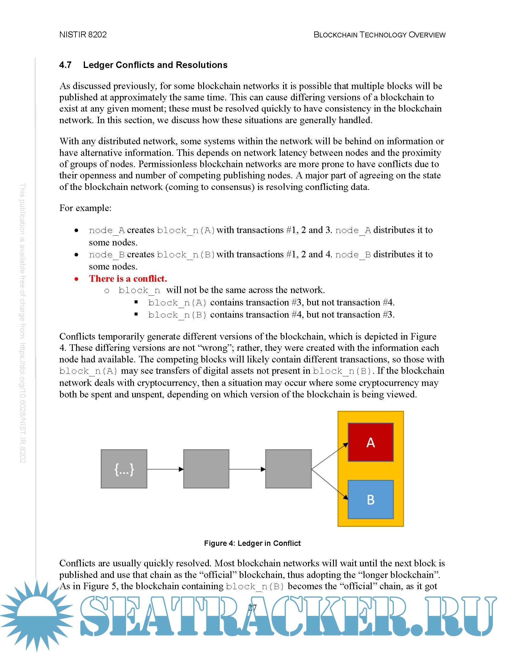 Year: 2018 Language: english Author: NIST - National Institute of Standards and Technology Genre: Technical book Format: PDF Quality: eBook Pages count: 68 Description: Blockchains are tamper evident and tamper resistant digital ledgers implemented in a distributed fashion (i.e., without a central repository) and usually without a central authority (i.e., a bank, company, or government). At their basic level, they enable a community of users to record transactions in a shared ledger within that community, such that under normal operation of the blockchain network no transaction can be changed once published. This document provides a high-level technical overview of blockchain technology. The purpose is to help readers understand how blockchain technology works.