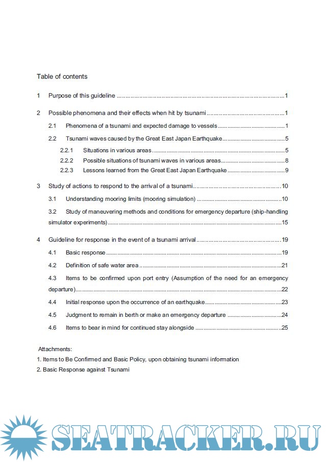 Year: 2012 Language: english Author: NYK Genre: Guide Publisher: NYK Line Format: PDF Quality: Scanned pages Pages count: 32 Description: NYK has drawn upon the lessons learned from the tremendous tsunami damage sustained by vessels after the Great East Japan Earthquake in March of last year to create tsunami-response guidelines for ships in port. The guidelines, the first to be developed for Japan, were presented on May 23 at a meeting hosted by the Japan Institute of Navigation. The guidelines detail how a vessel in port should react to information about an incoming tsunami, particularly by giving top priority to preserving life and then minimizing damage to the vessel hull and port facilities. The guidelines will be provided as a reference material to assist ship masters in their decision-making process during their review of the circumstances at the time and the changes likely to be caused by the incoming tsunami.