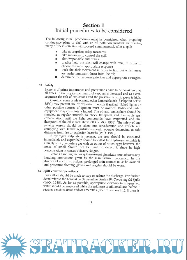Year: 1997 Language: english Author: IMO Genre: Handbook Publisher: IMO ISBN: 9789280114201 Format: PDF Quality: Scanned pages Pages count: 54 Description: This extensively illustrated field guide is directed towards those who have to respond to oil spills in tropical marine waters. It aims to provide information and general guidance on the response measures to be taken (and on those to be avoided) for the different types of tropical habitat. Background information is given on the fate of spilled oil, characteristics of the different marine habitats and suitable techniques to use to respond to oil spills. The principles of spill response described in this guide are based on case histories and on experiments that have been reported in the scientific literature.