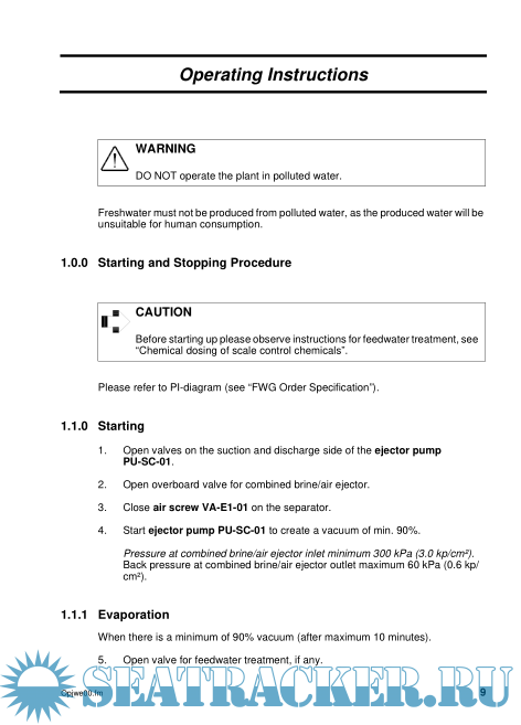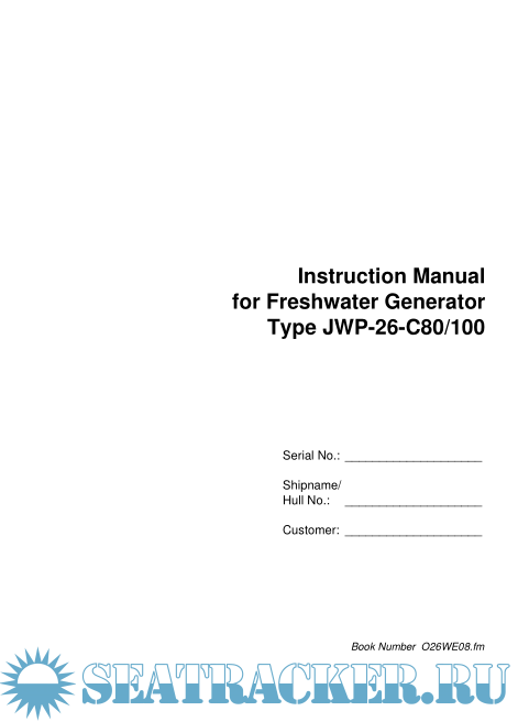 Instruction Manual for Freshwater Generator Type JWP-26-C80/100