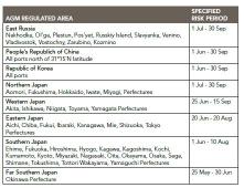 Description: The Asian Gypsy Moth (AGM) is a destructive forest pest known to spread via ocean-going vessels in international trade. Vessels calling at certain ports in the Asia Pacific between May and September should therefore be inspected and “certified free of AGM” prior to departure, this to minimize the potential for regulatory action when arriving in a country where the pest is not native.